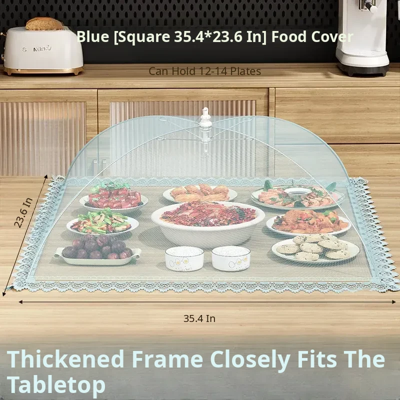 [35.43in*23.62in] Rectangular "Can Cover about 12-14 Dishes"✅️Island Blue [Dustproof and Insectproof/Extra Thick Frame]