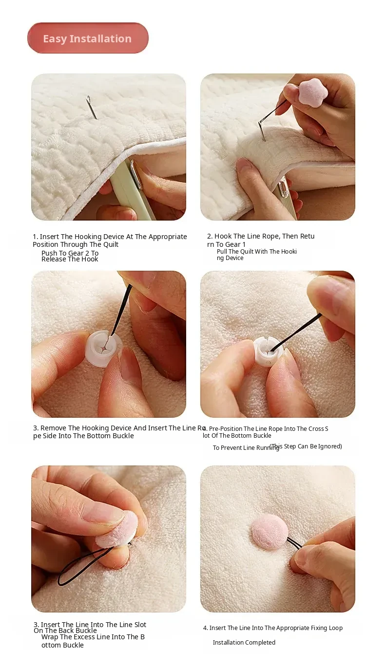 New Needle-Free Bed Sheet Fasteners - Safe, Invisible, and Removable Quilting Solution for Comforters, Bed Sheets, and Duvet Covers - Anti-Slip Magic for a Tidy Bed!