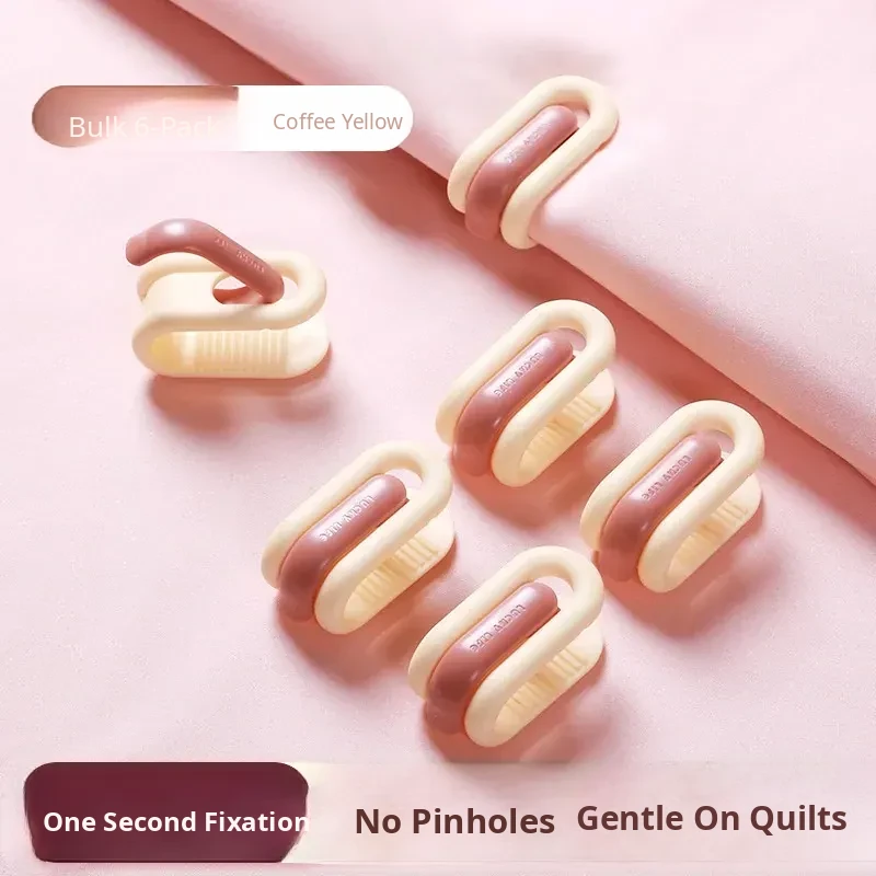 6 Pieces - Coffee Yellow Color [Universal for Thin and Thick Quilts/True Needleless/Button Fixed]