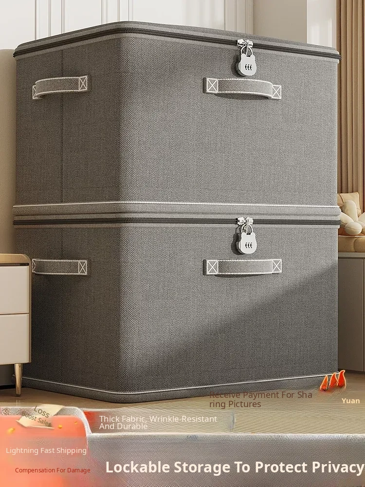 Foldable Fabric Storage Box with Lock - Multi-Layer Organizer for Clothes, Quilts, and Toys - Perfect Home Solution for Neat and Tidy Storage