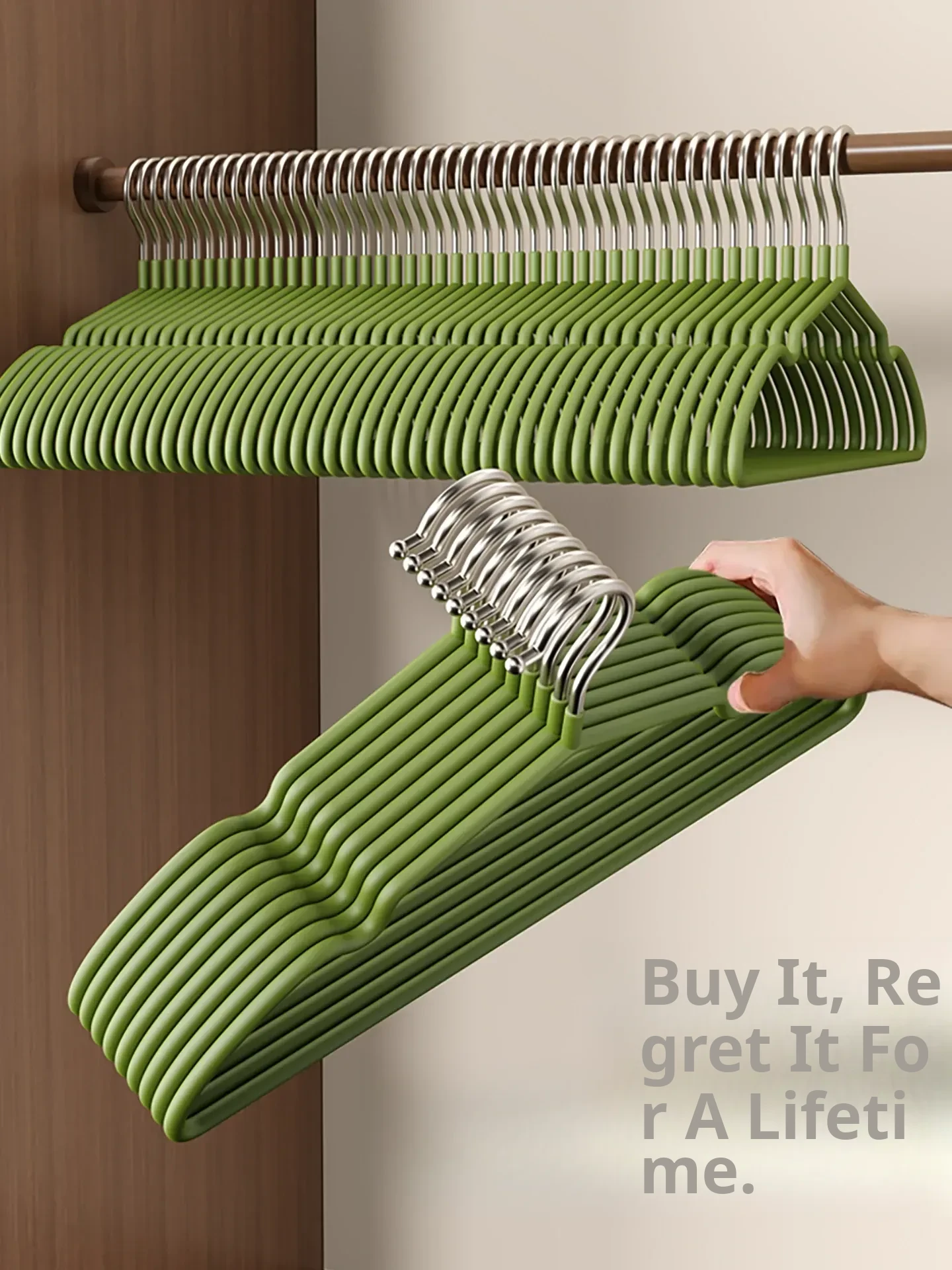 Non-Slip Velvet Hangers for Home Use - Green Clothes Organizer, Perfect for Closet Storage and Preventing Shoulder Bumps - Essential for Wardrobe Management and Drying Clothes