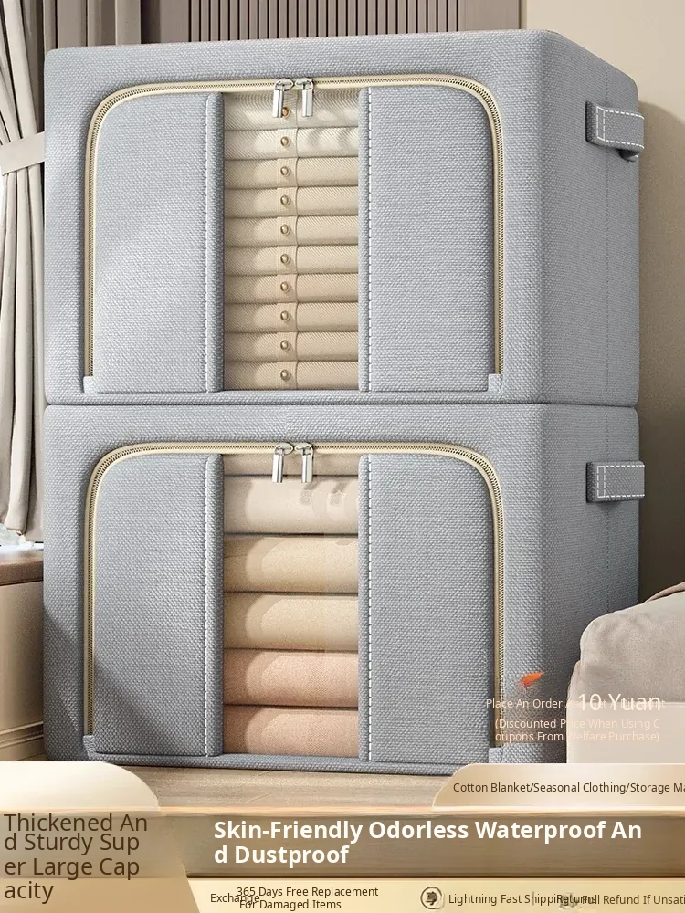 Thickened Cotton Linen Storage Box - Foldable Clothes Organizer for Wardrobe, Large Household Basket for Quilts and Clothing, Your Ultimate Home Storage Solution!