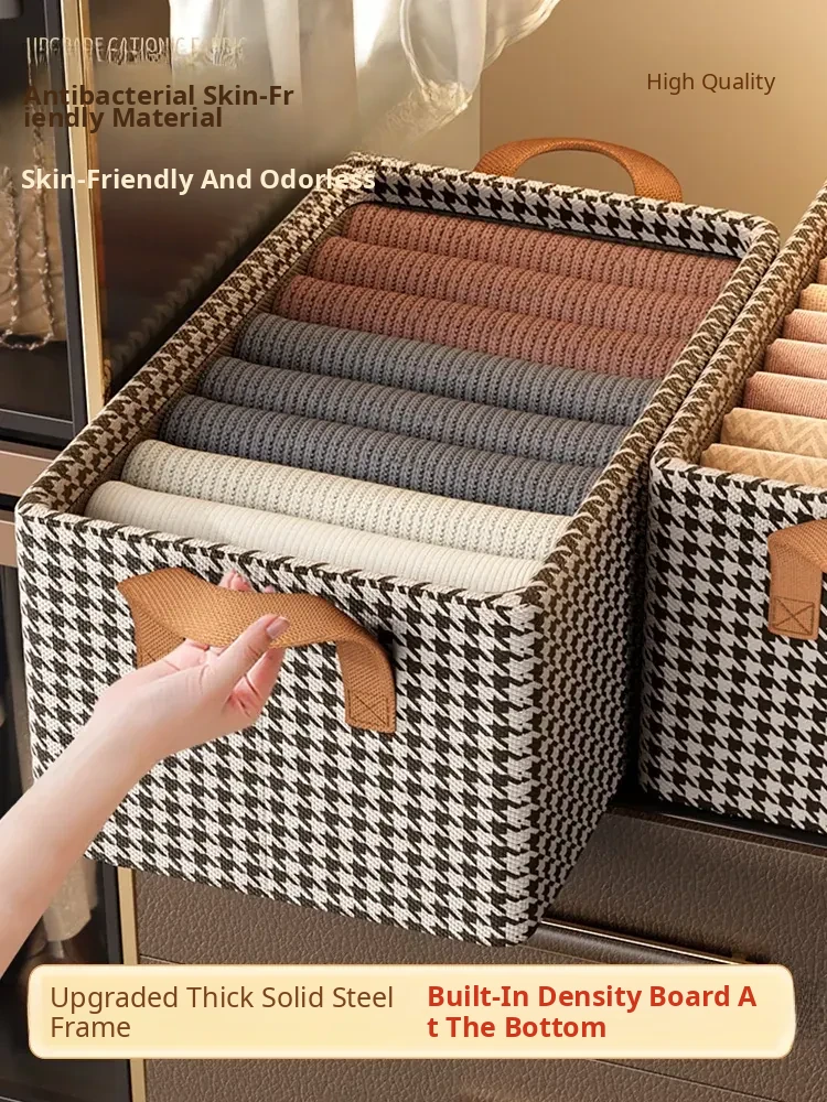 Chic Houndstooth Clothing and Pants Storage Box - Stackable Drawer Organizer for Home Wardrobes, Perfect for Neatly Organizing Clothes and Maximizing Space!