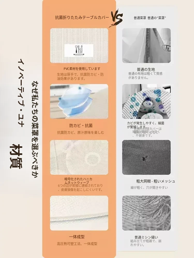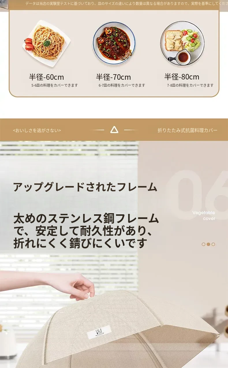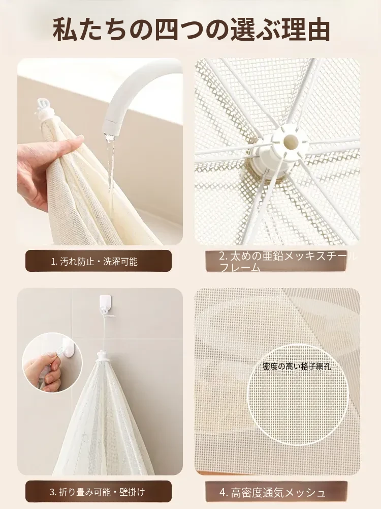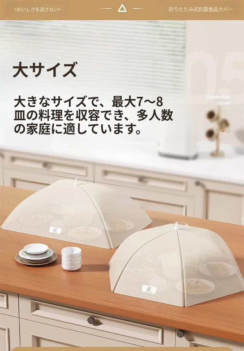 抗菌折りたたみ式フードカバー - 2025年新モデル!家庭用の飛虫防止カバーで、残り物も安心!食卓を美しく保ちながら、食材をしっかりガードします。