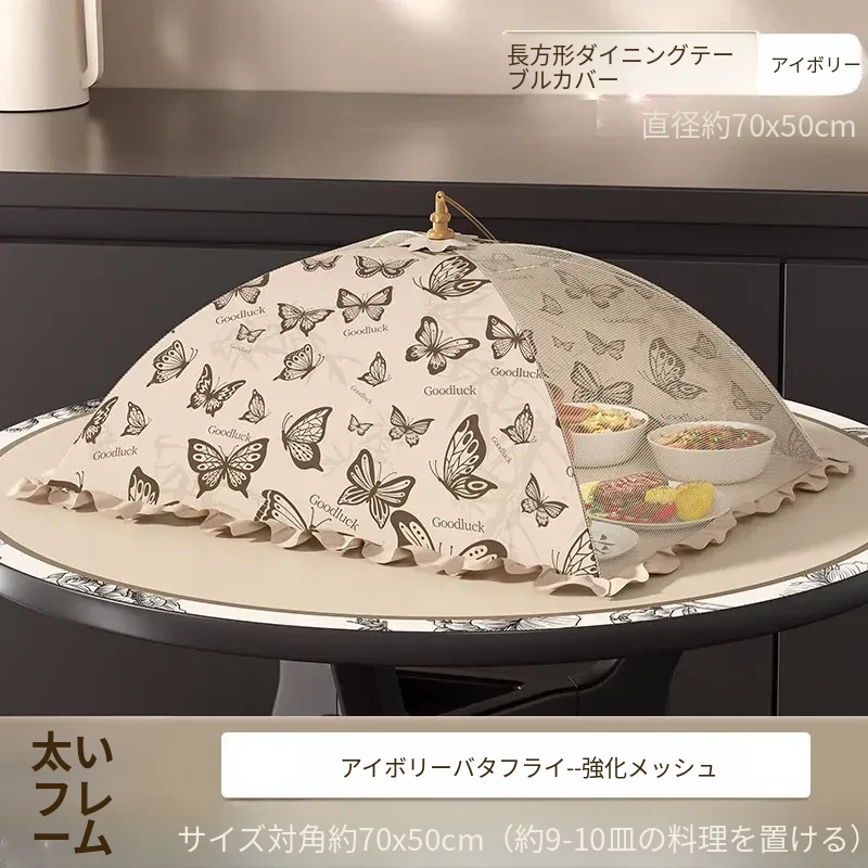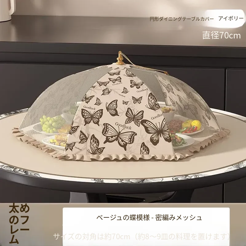 米白色【円形70cm⭐蝶】菜カバー/密編みネット(約8-9皿の料理が入ります)