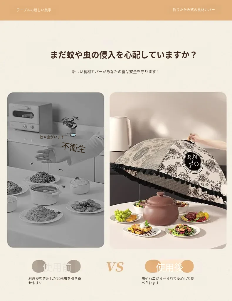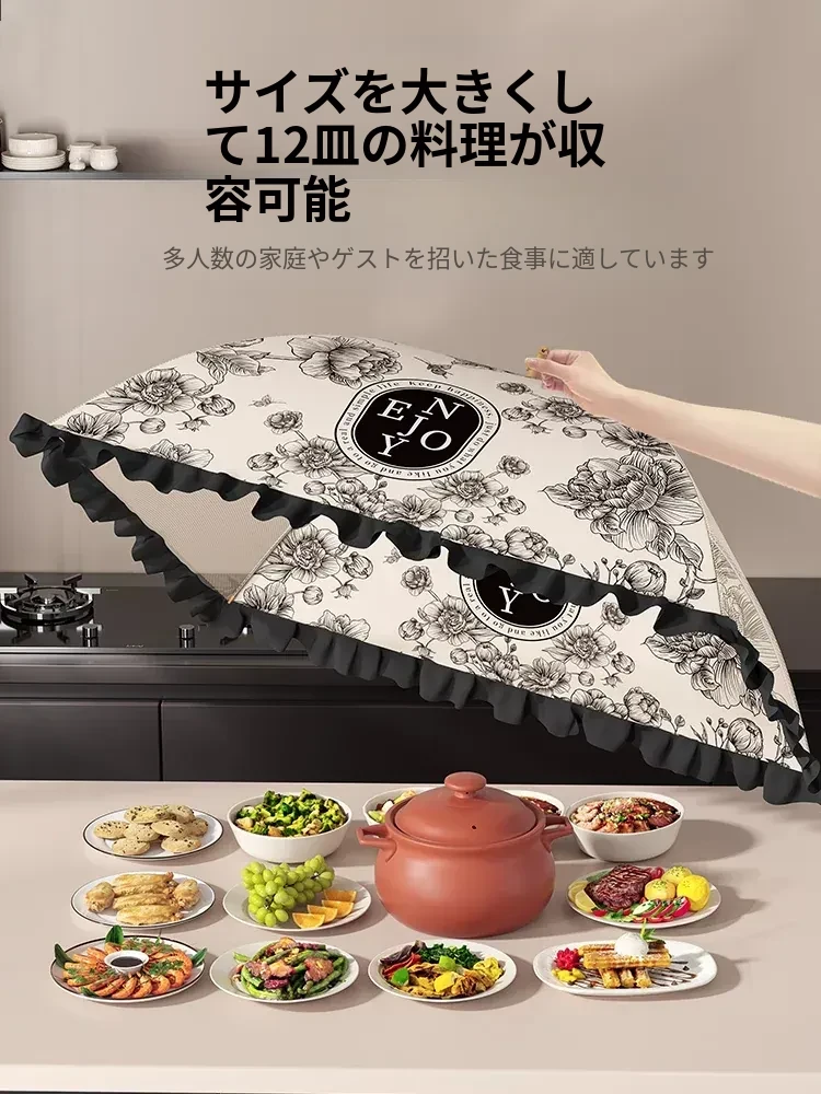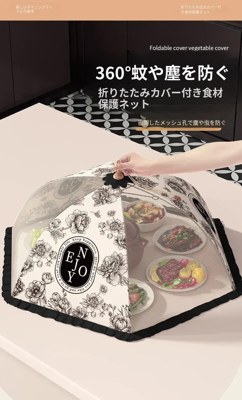 2025年新作!折りたたみ式の家庭用虫除けカバー - 蚊やハエから食材を守る!残り物や野菜をしっかりカバーし、収納も簡単な便利アイテム!