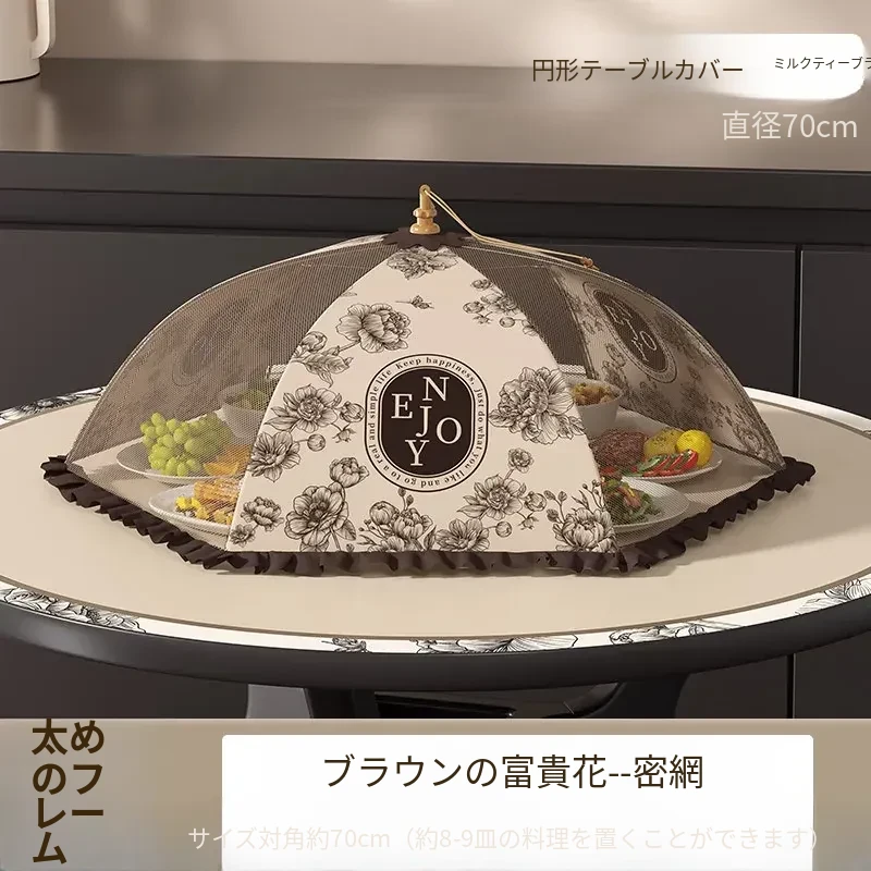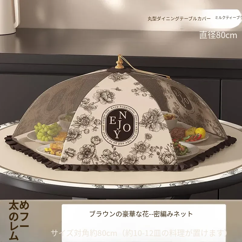モカブラウン【円形80cm❤️花】菜カバー/密編みネット(約10-12皿の料理が入ります)
