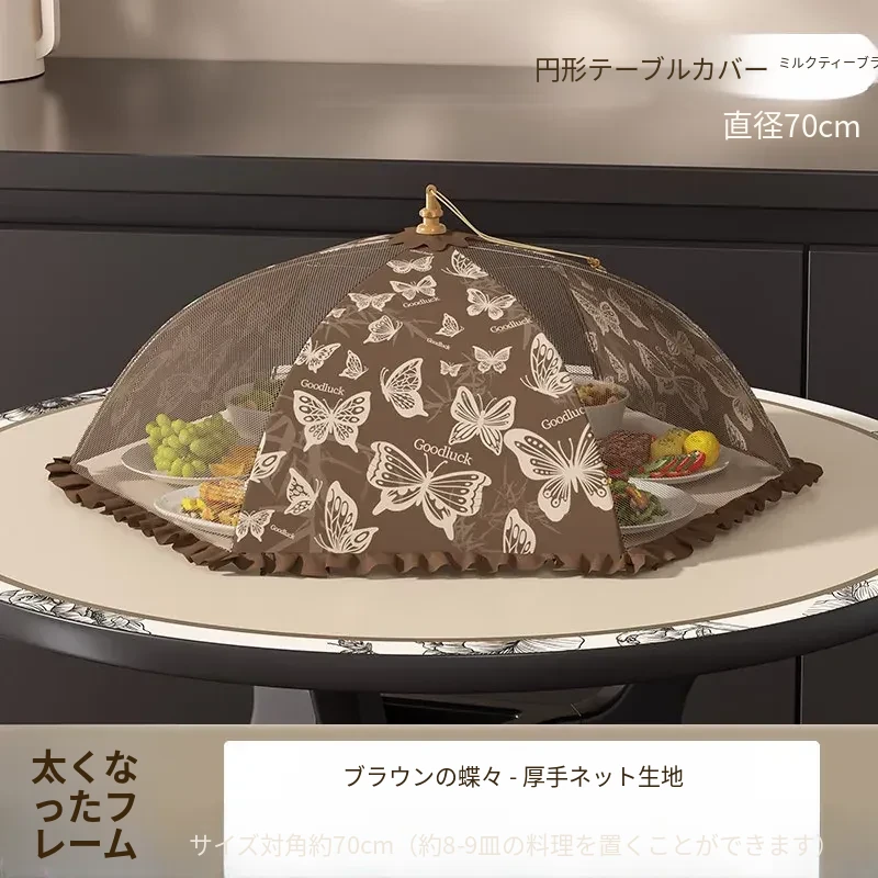 モカブラウン【円形70cm⭐蝶】菜カバー/密編みネット(約8-9皿の料理が入ります)
