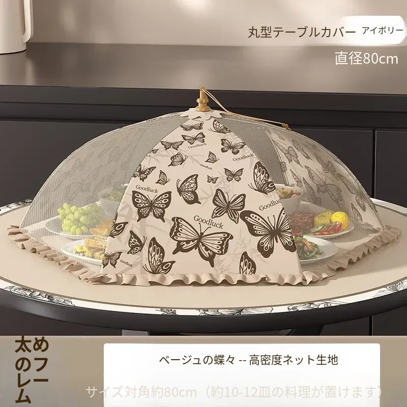 米白色【円形80cm⭐蝶】菜カバー/密編みネット(約10-12皿の料理が入ります)