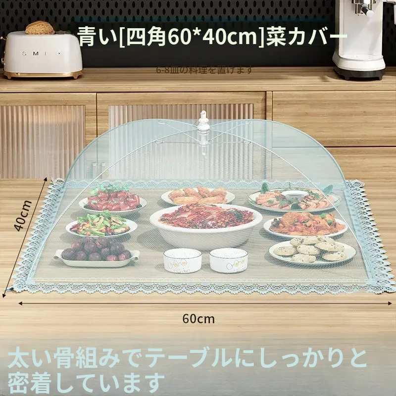 【60*40cm】長方形『約6-8皿の料理をカバー可能』✅️アイランドブルー【防塵・防虫/特太フレーム】