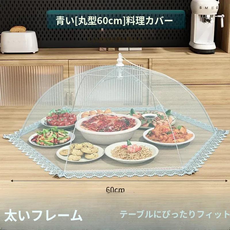 【60cm】円形『約8-10皿の料理をカバー可能』✅️アイランドブルー【メッシュ孔密度アップ/防塵・防虫/特太フレーム】