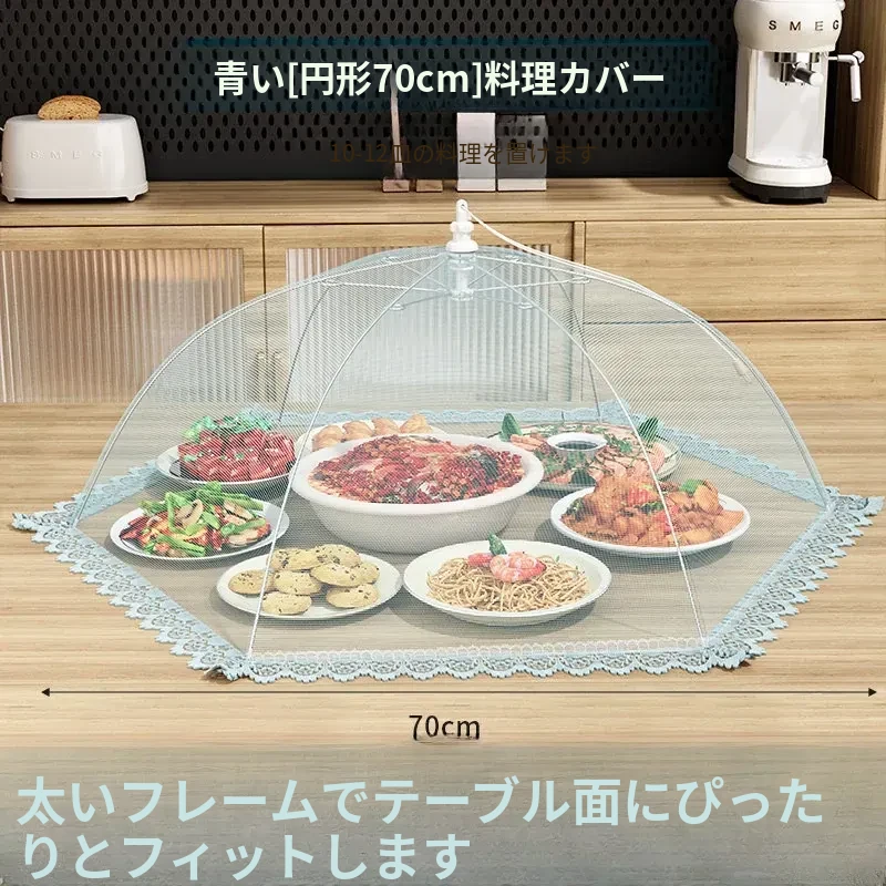 【70cm】円形『約10-12皿の料理をカバー可能』✅️アイランドブルー【メッシュ孔密度アップ/防塵・防虫/特太フレーム】