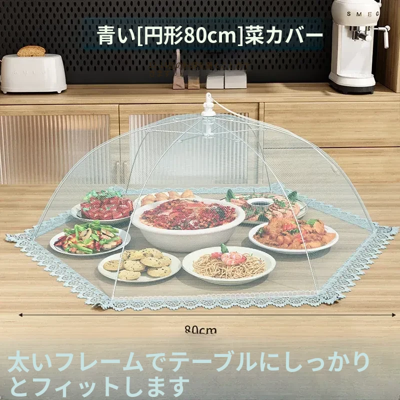 【80cm】円形『約12-14皿の料理をカバー可能』✅️アイランドブルー【メッシュ孔密度アップ/防塵・防虫/特太フレーム】
