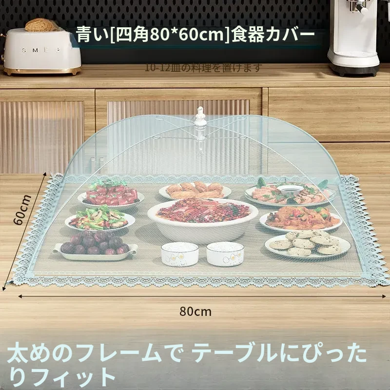 【80*60cm】長方形『約10-12皿の料理をカバー可能』✅️アイランドブルー【防塵・防虫/特太フレーム】
