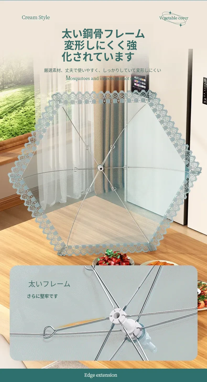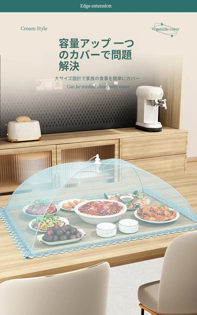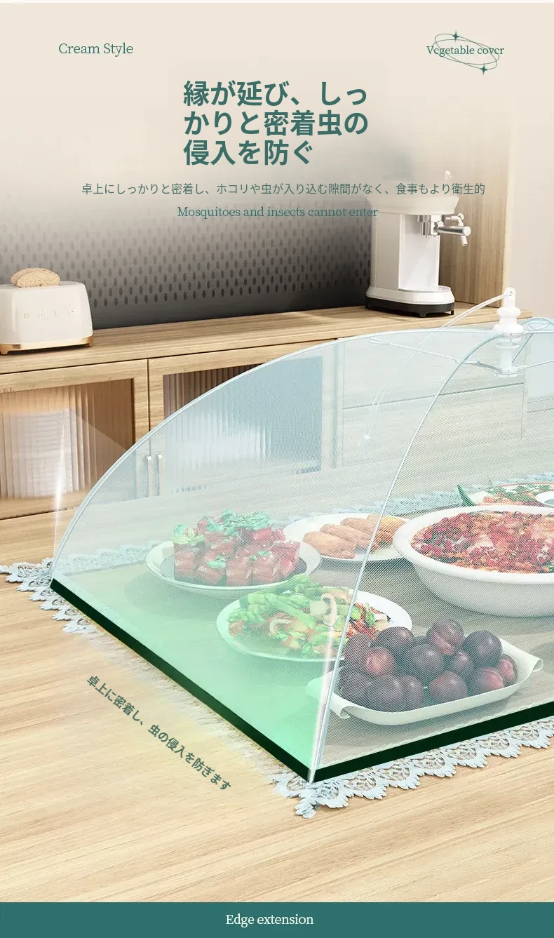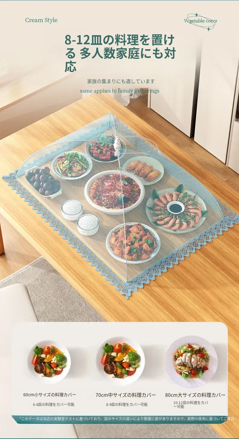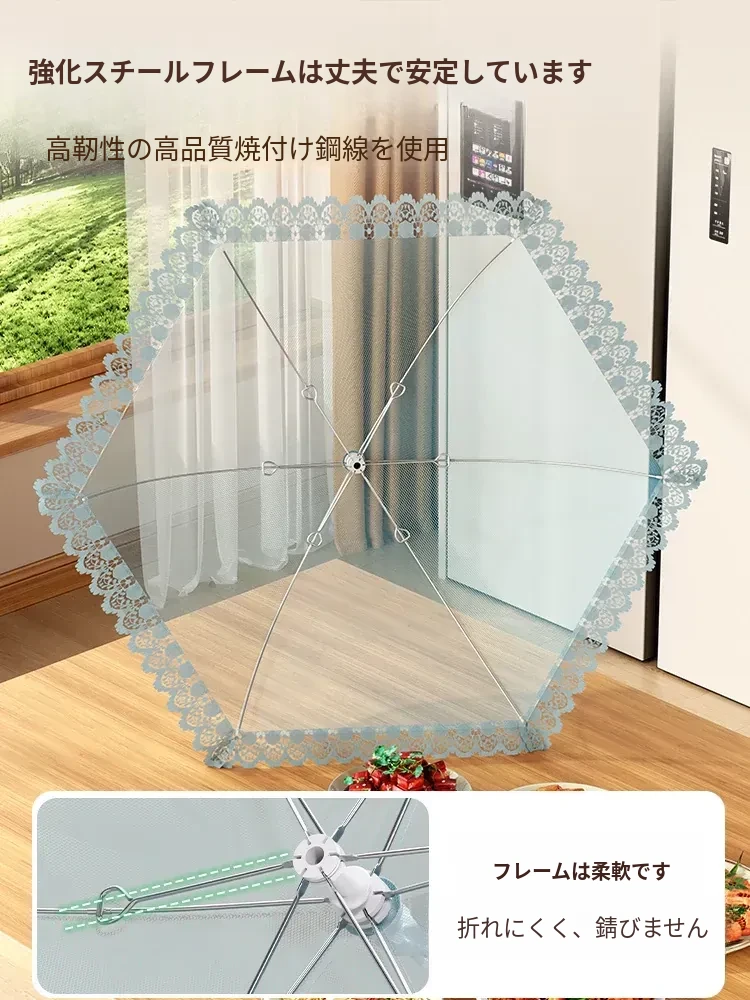 2025年新登场!折りたたみ式の家庭用フライ防止カバー、ホコリから食材を守る魔法のような収納カバー。美味しい料理を清潔に保つ、必見のアイテムです!