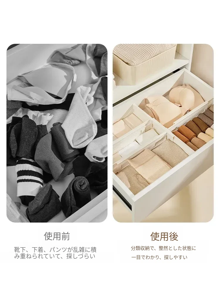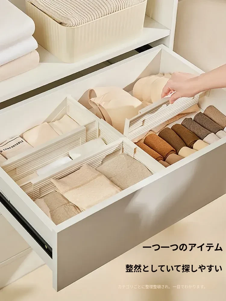 自由に組み合わせ可能!プラスチック製の引き出し収納仕切り板で、クローゼットの整理整頓を簡単に。下着や靴下の収納がスッキリ!調整可能なデザインで、あなたのライフスタイルにぴったりフィットする整理整頓の必需品!