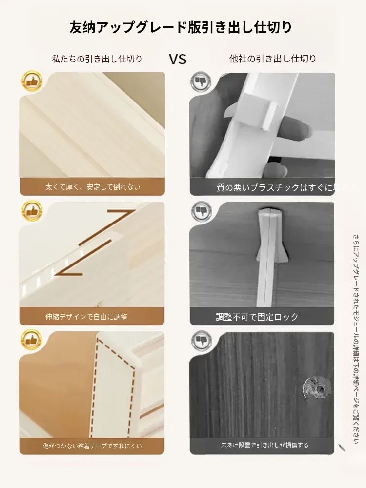 5個セット★クリームホワイト★・【自由調整可能丨区分収納】