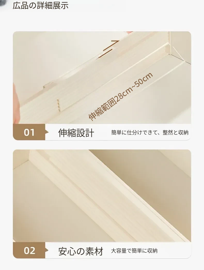 2個セット-クリームホワイト-【自由調整可能丨区分収納】