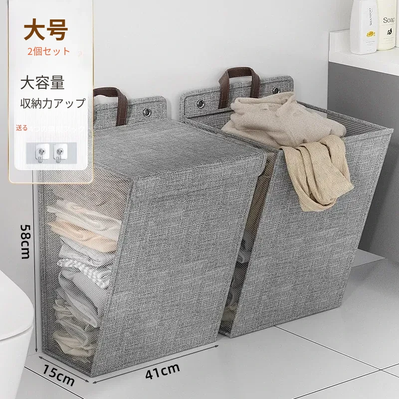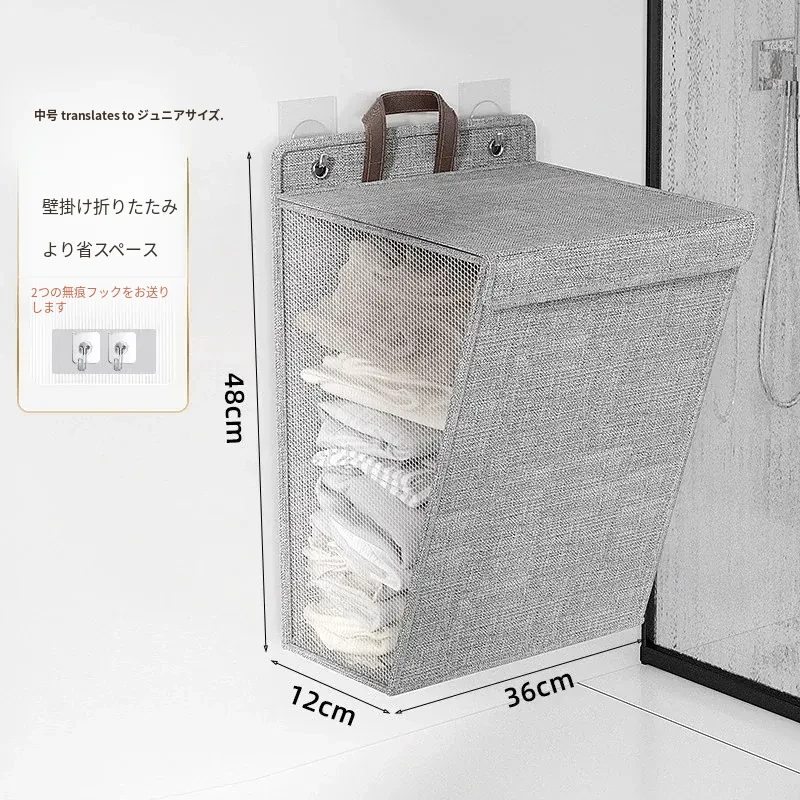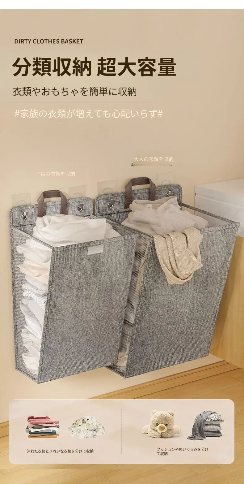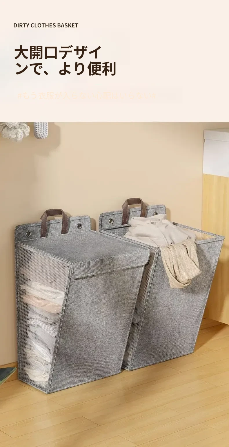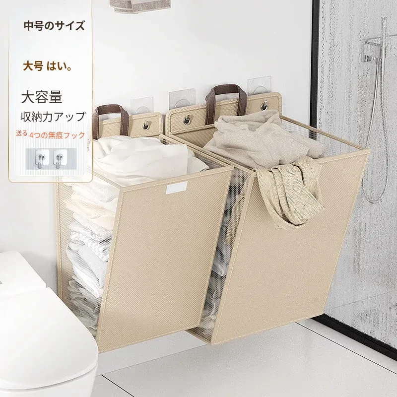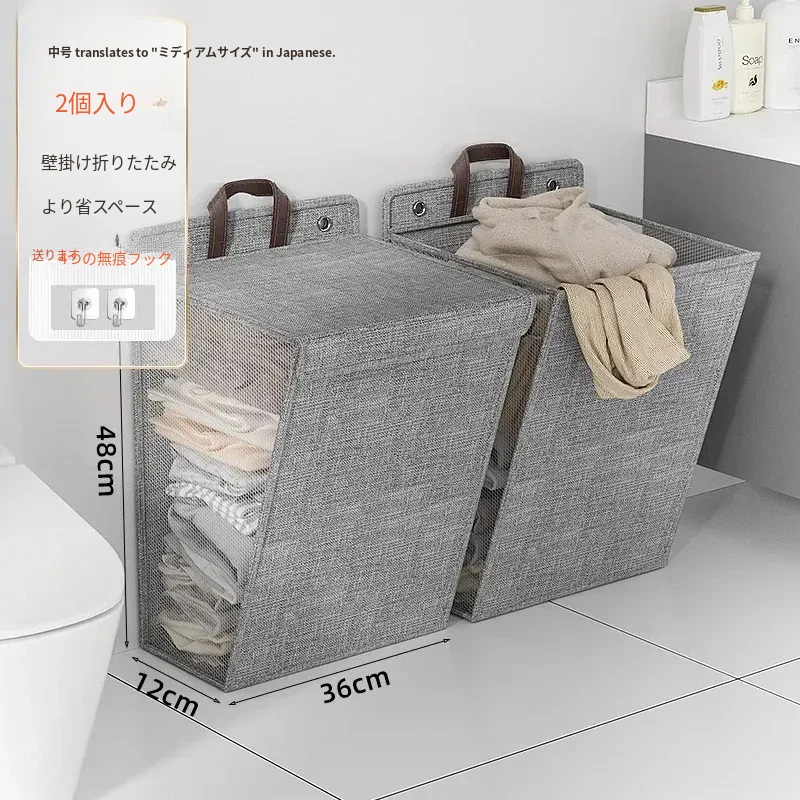 折りたたみ式の汚れた衣服収納バスケット!洗濯物をスッキリ整理できる壁掛けバスケット。バスルームの必需品で、使わないときはコンパクトに収納可能。おしゃれで実用的なアイテムです!