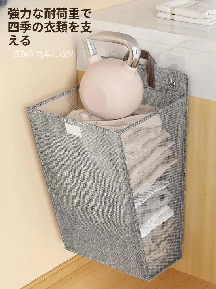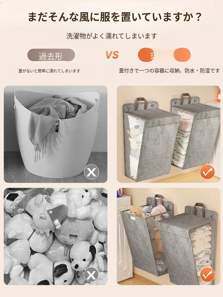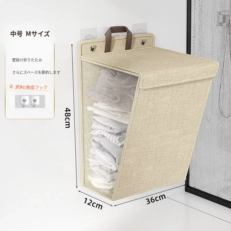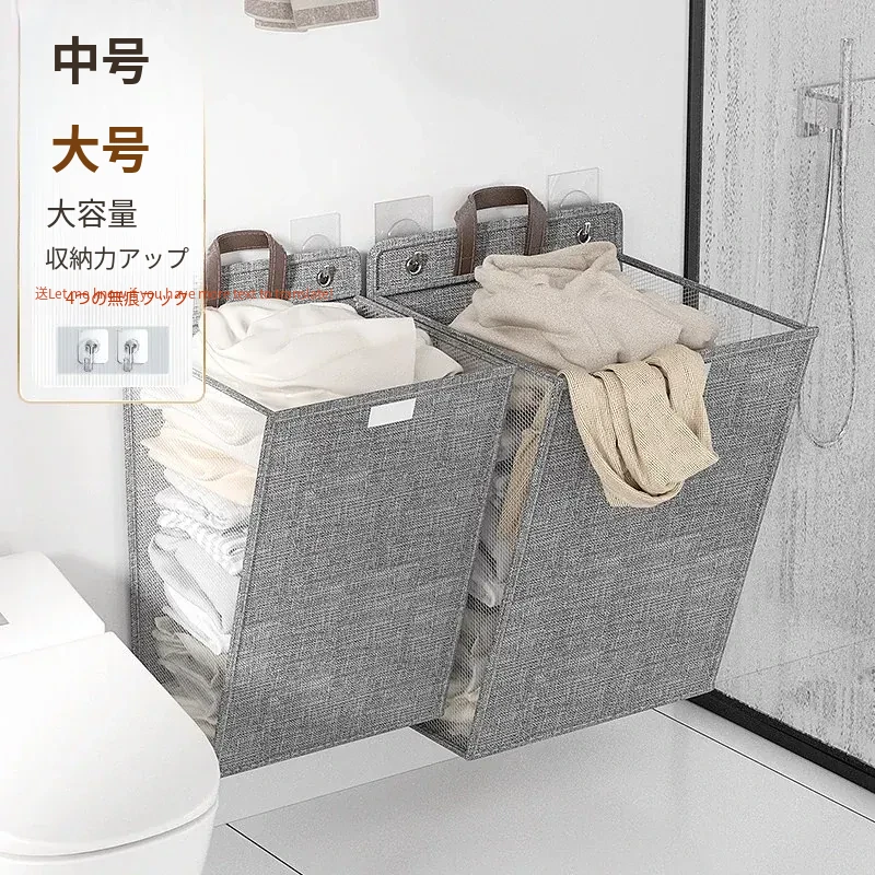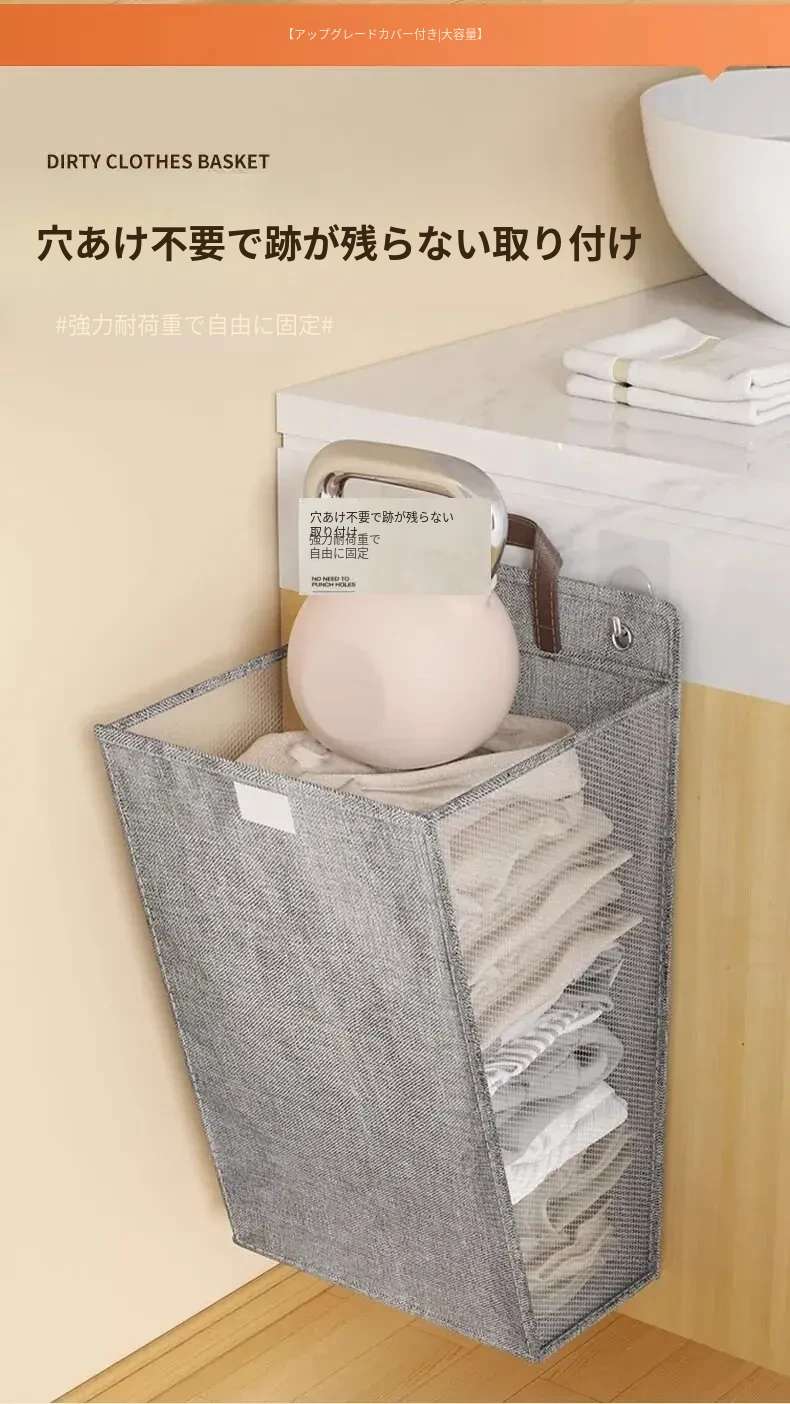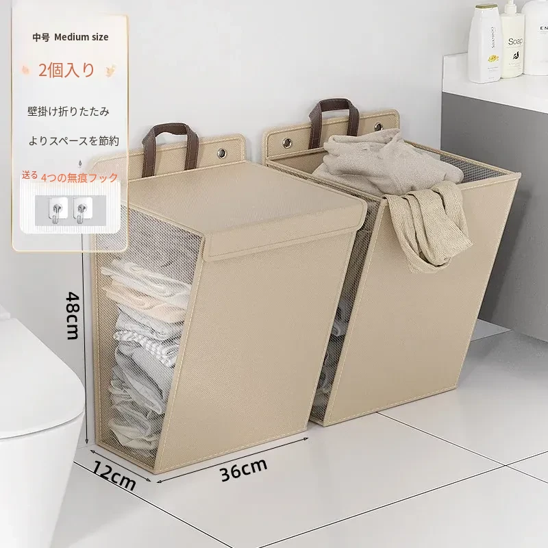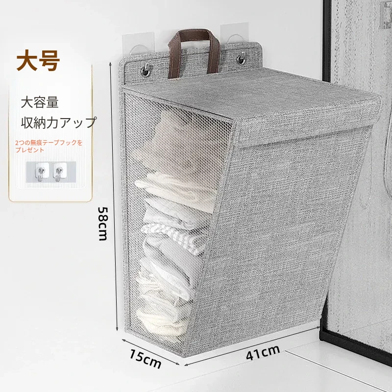 折りたたみ式の汚れた衣服収納バスケット!洗濯物をスッキリ整理できる壁掛けバスケット。バスルームの必需品で、使わないときはコンパクトに収納可能。おしゃれで実用的なアイテムです!