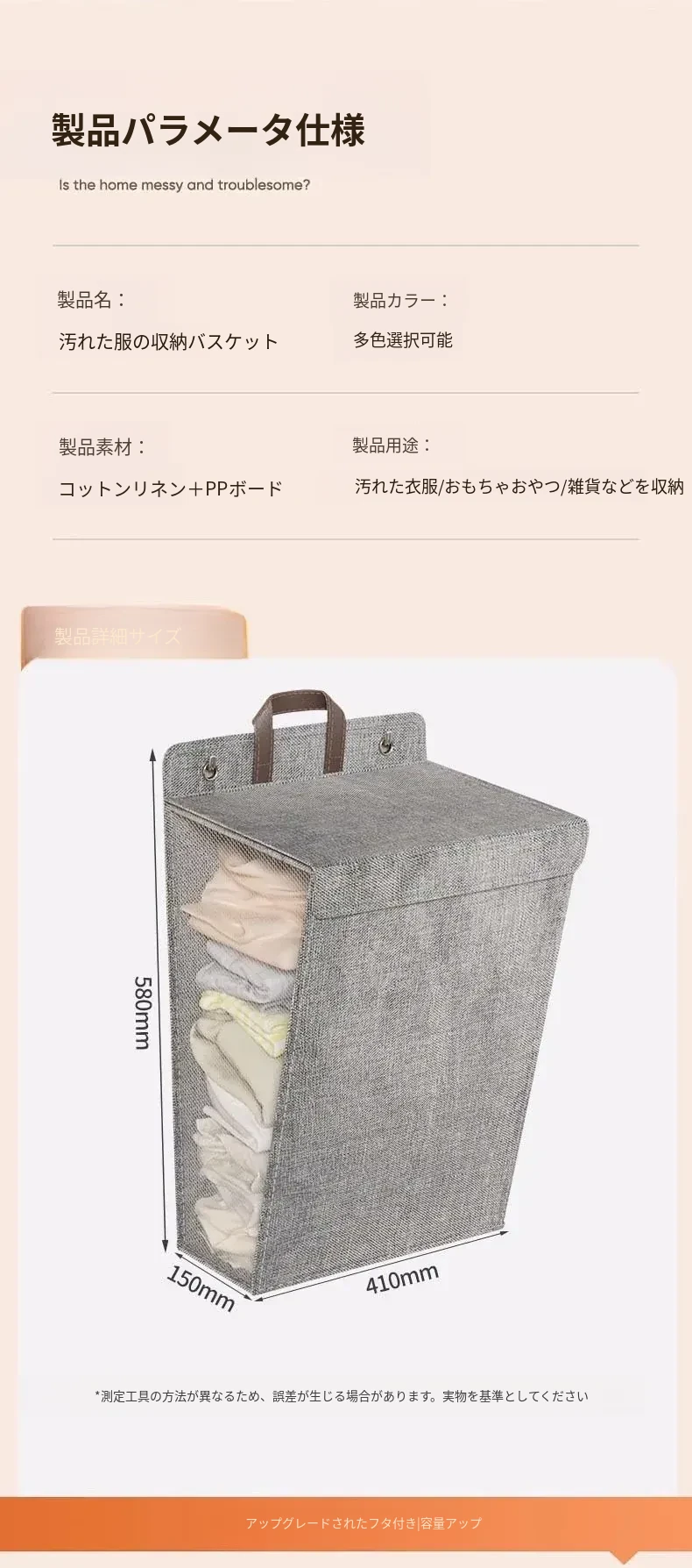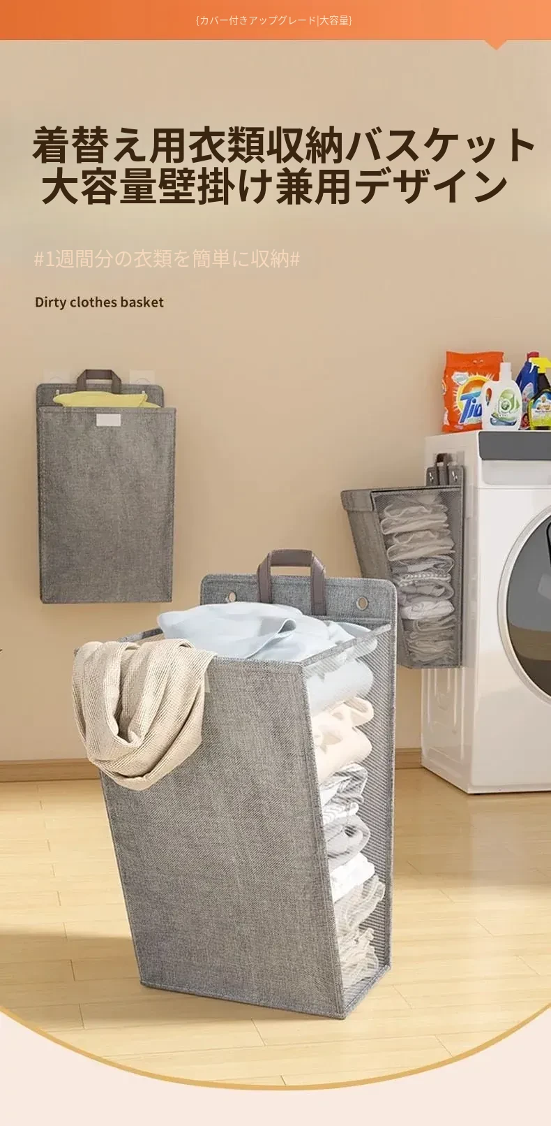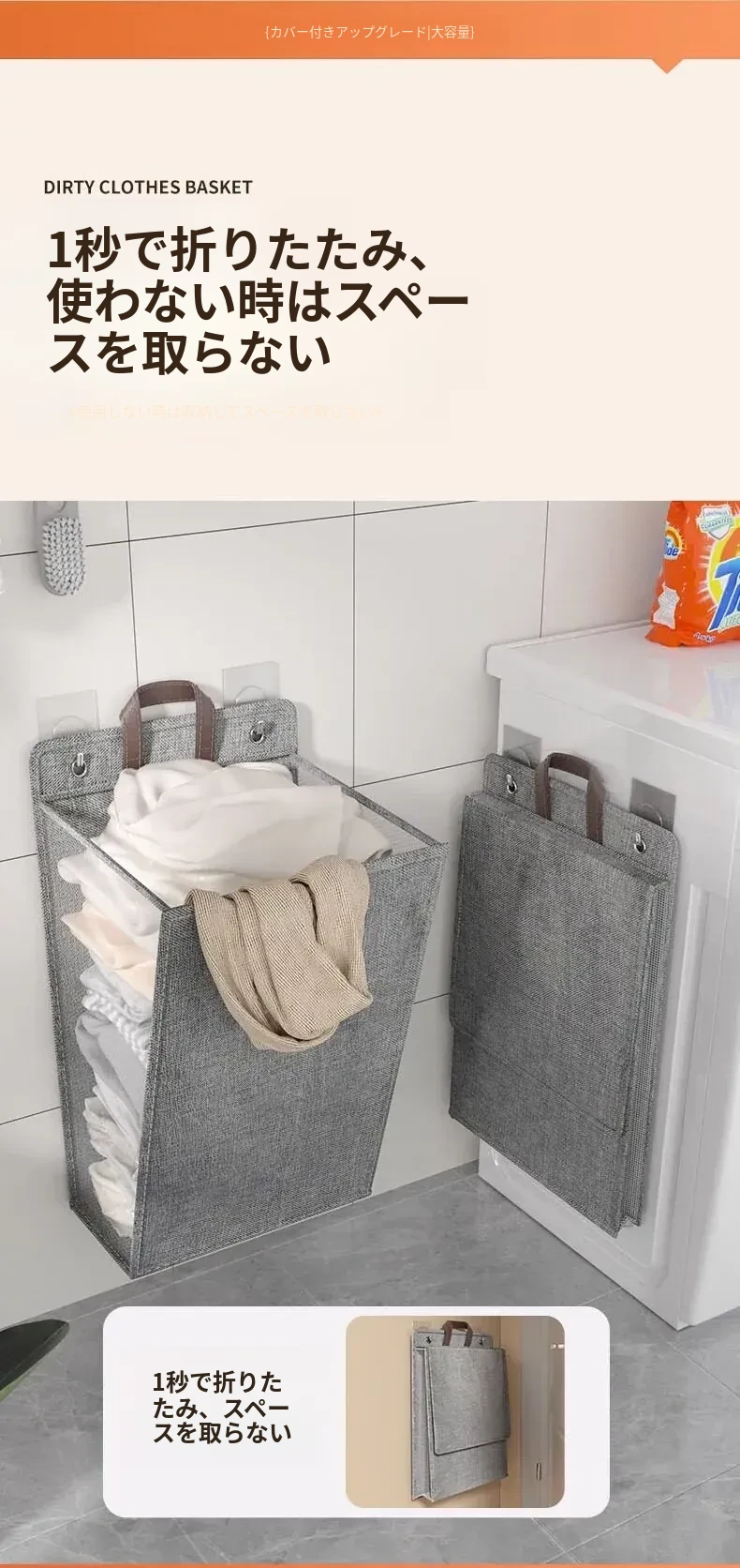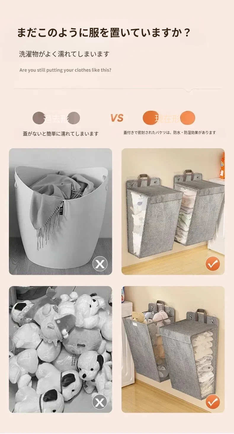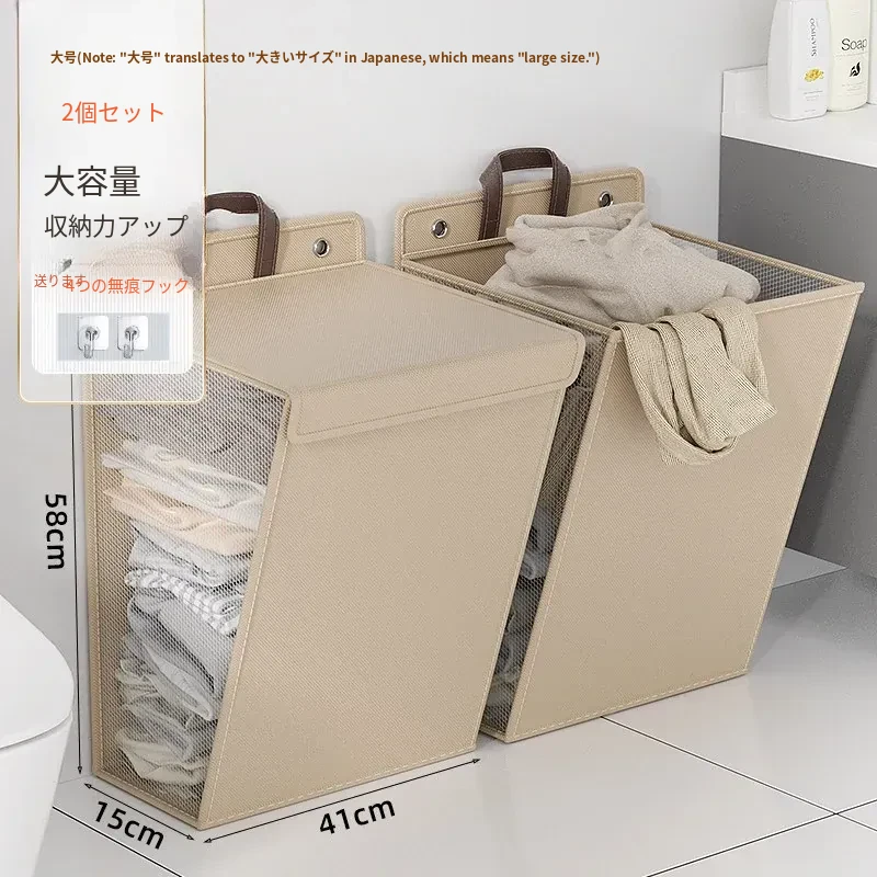 折りたたみ式の汚れた衣服収納バスケット!洗濯物をスッキリ整理できる壁掛けバスケット。バスルームの必需品で、使わないときはコンパクトに収納可能。おしゃれで実用的なアイテムです!