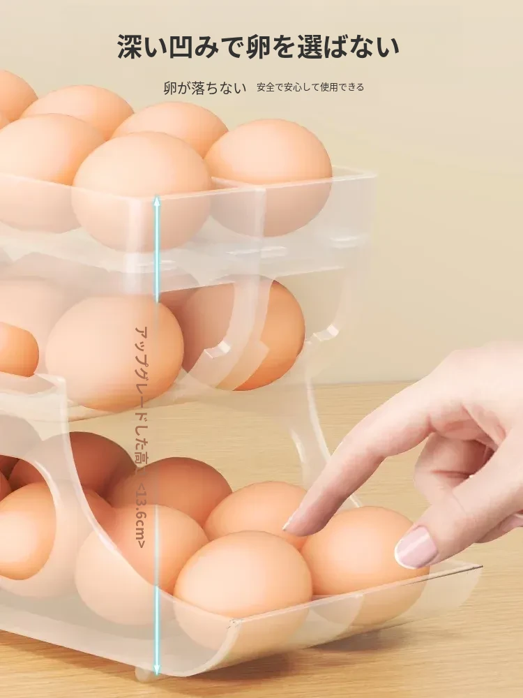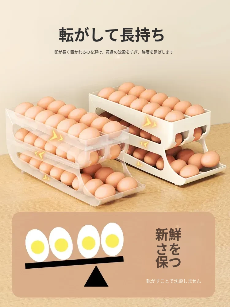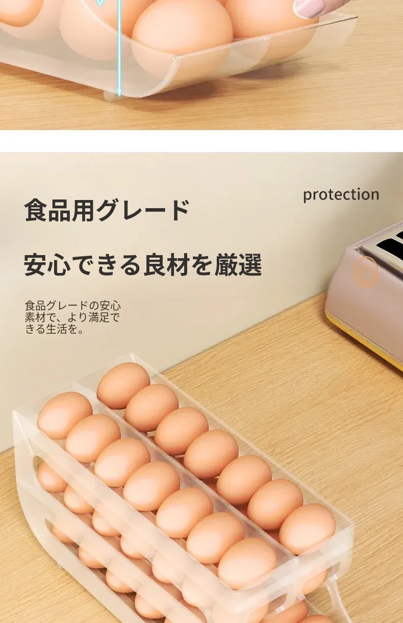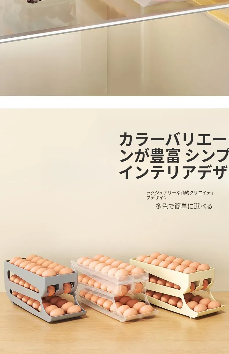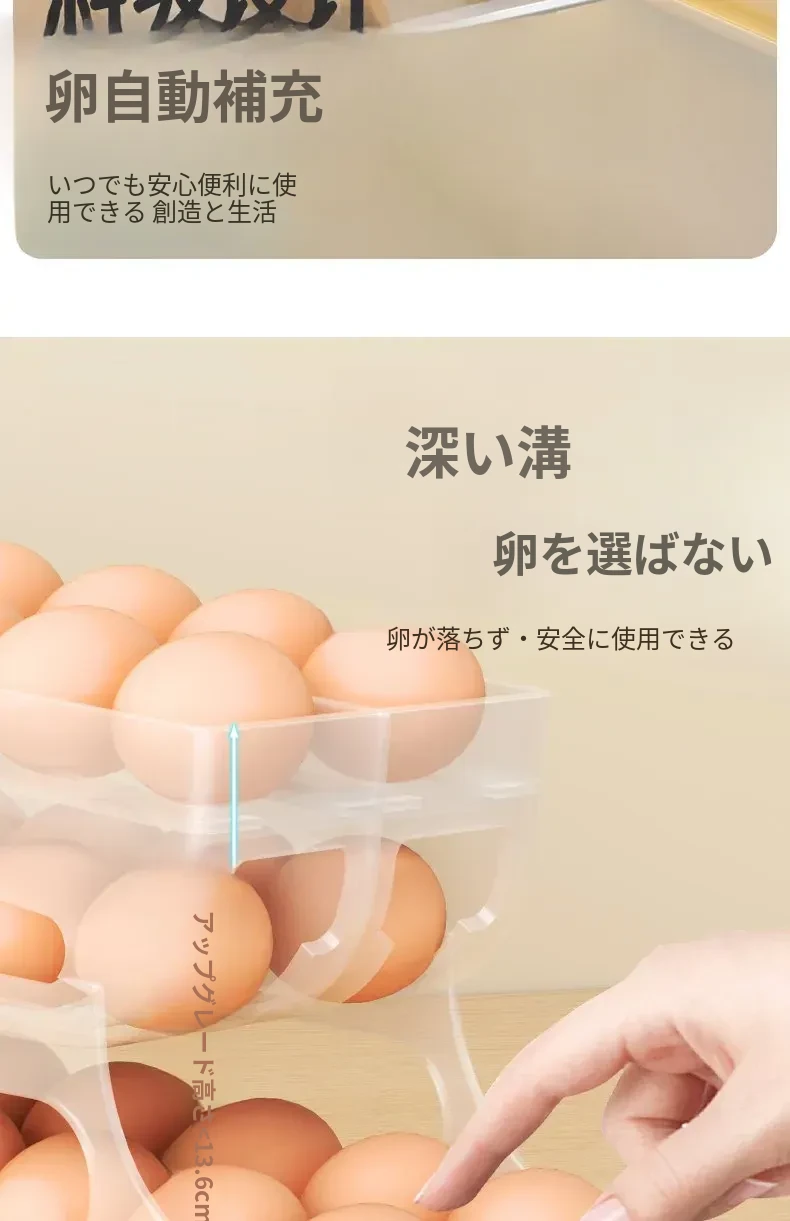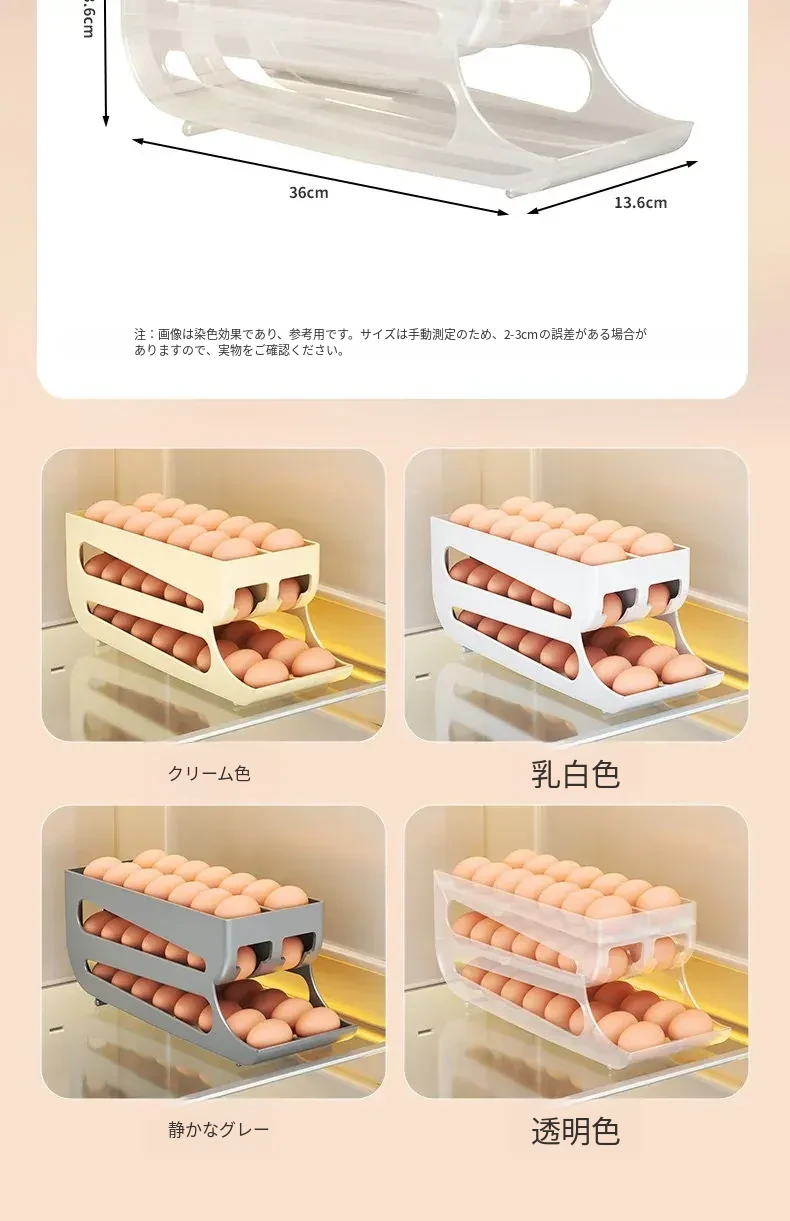 自動回転卵収納ボックス - 多層設計で便利!冷蔵庫のサイドドアにぴったりフィットする卵トレイ、鮮度を保ちながら美しいキッチンを演出します。