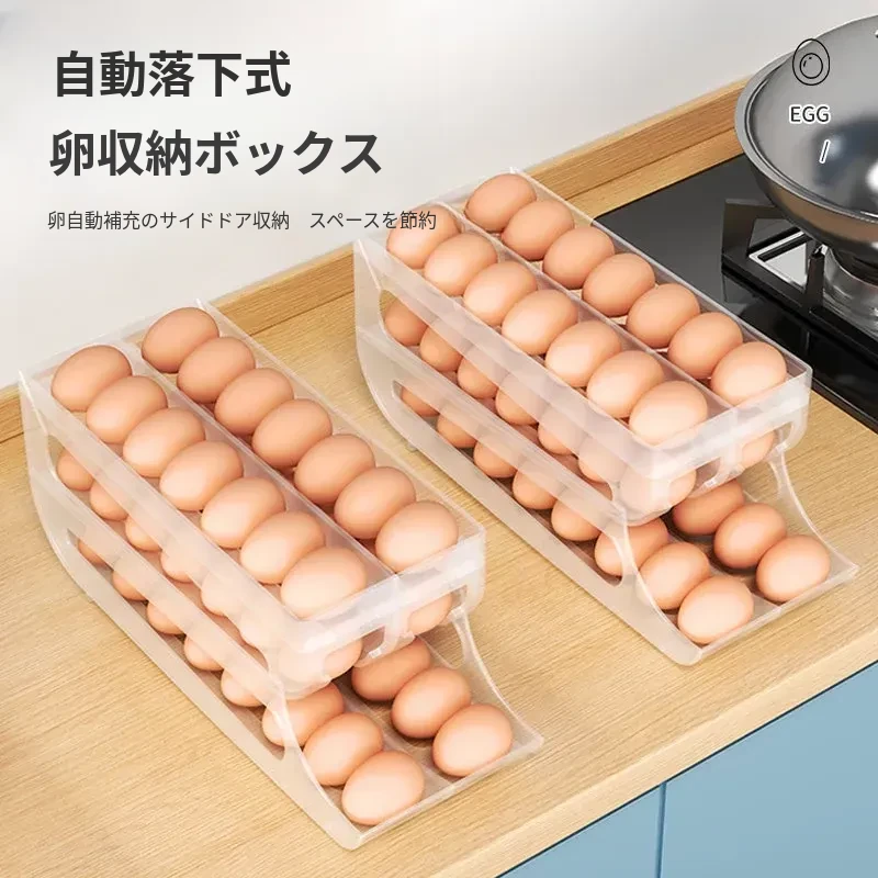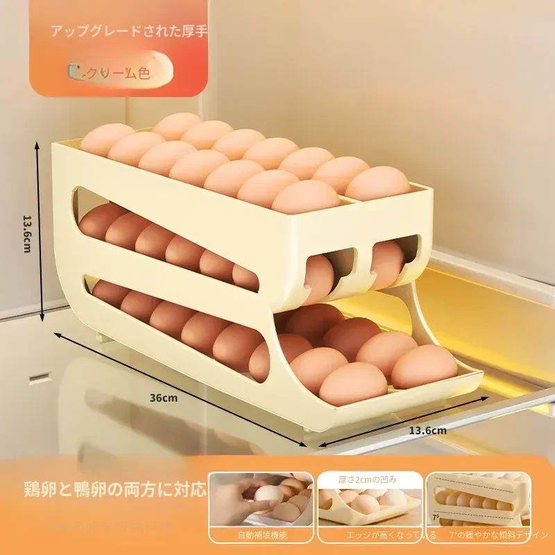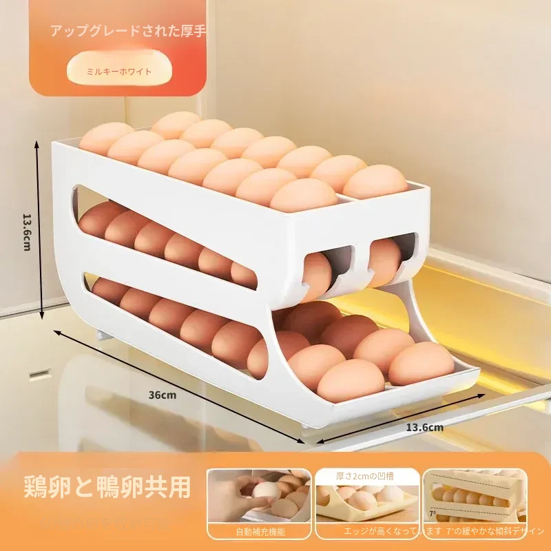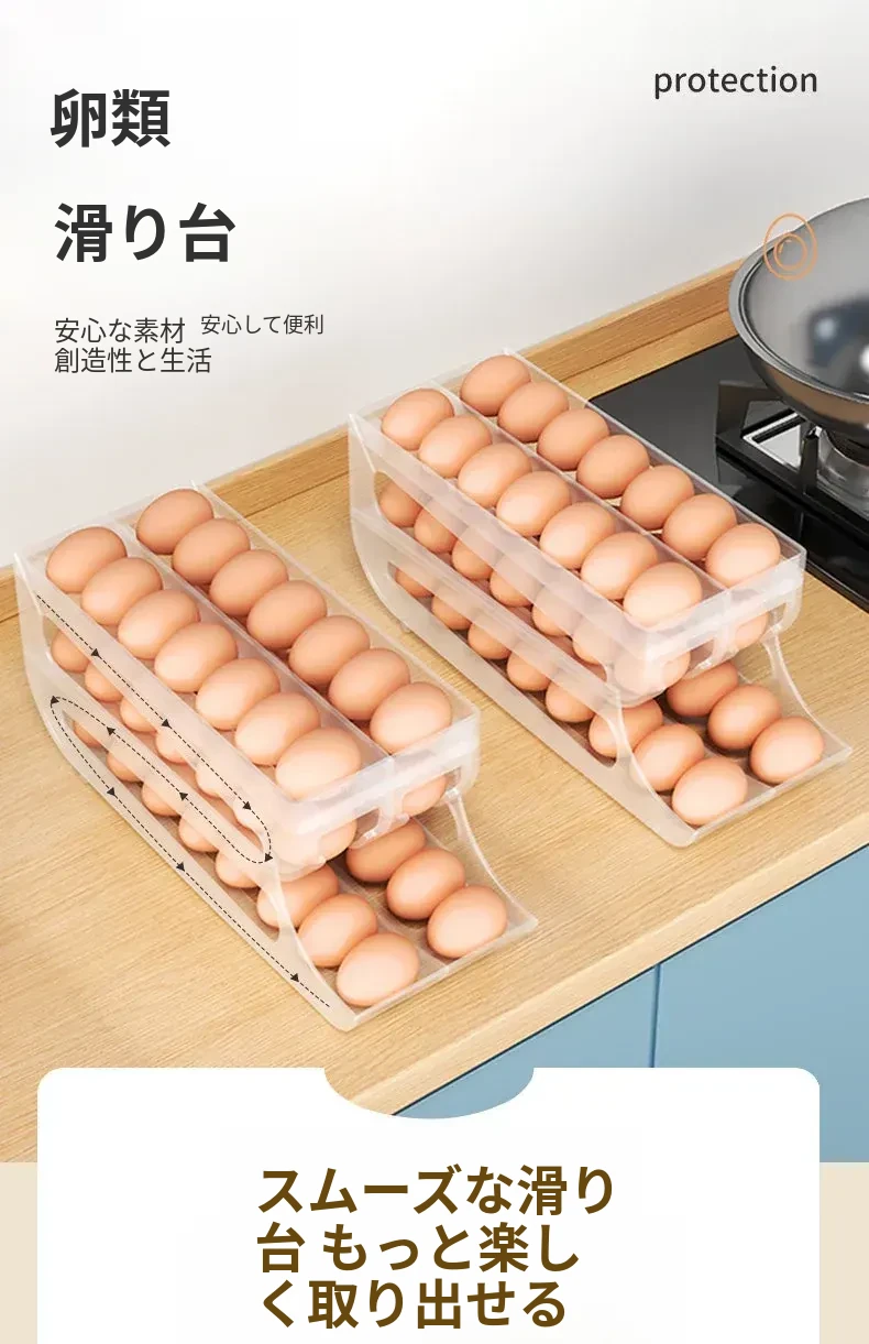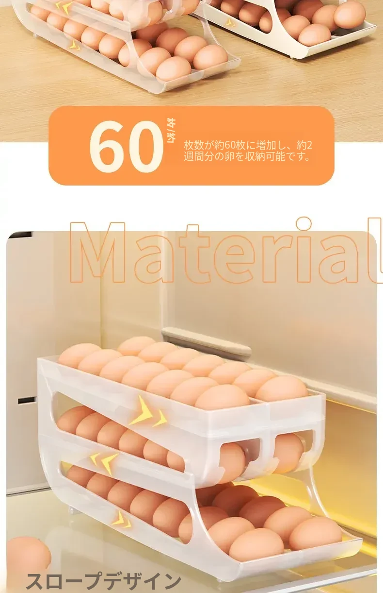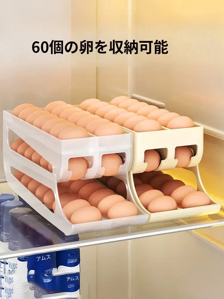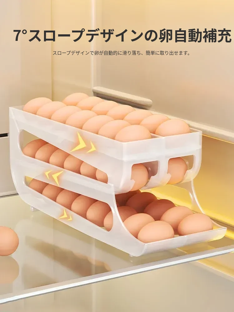 自動回転卵収納ボックス - 多層設計で便利!冷蔵庫のサイドドアにぴったりフィットする卵トレイ、鮮度を保ちながら美しいキッチンを演出します。