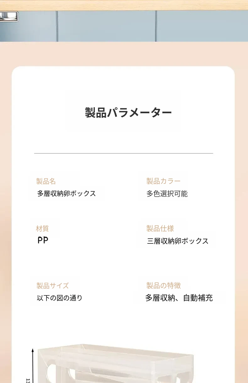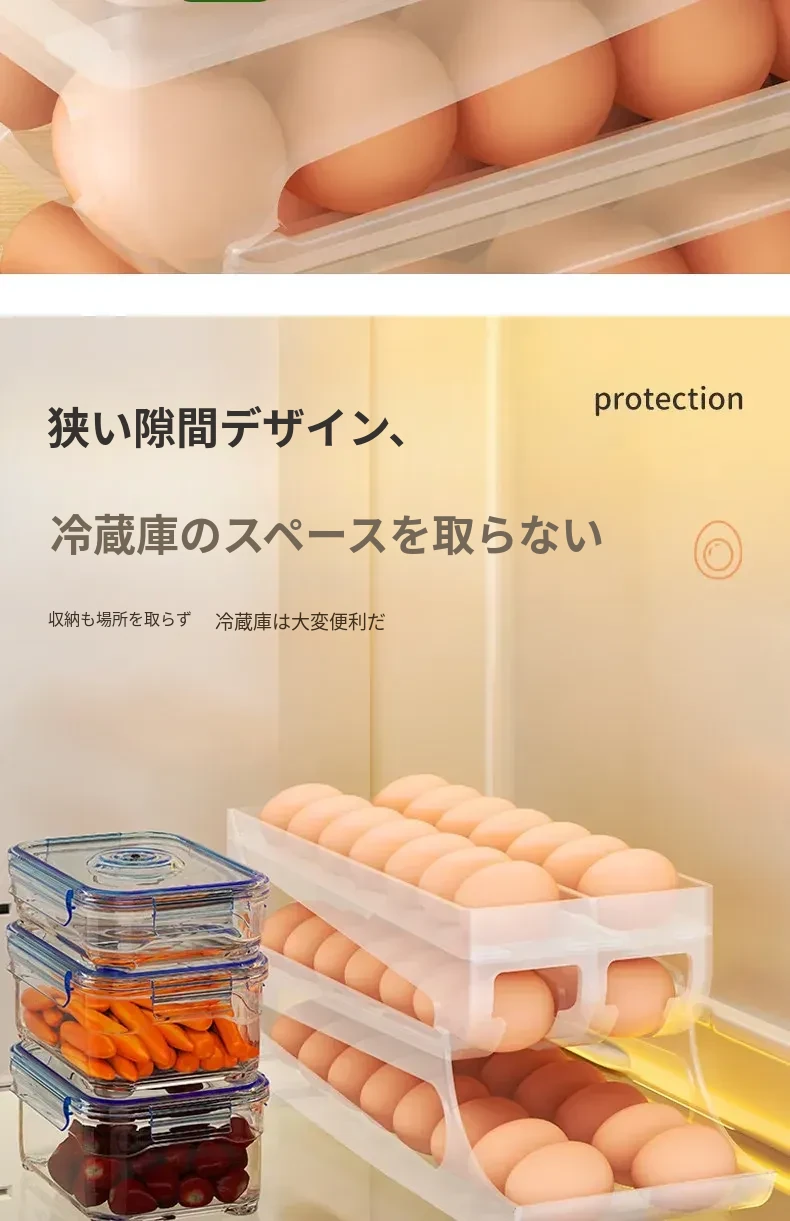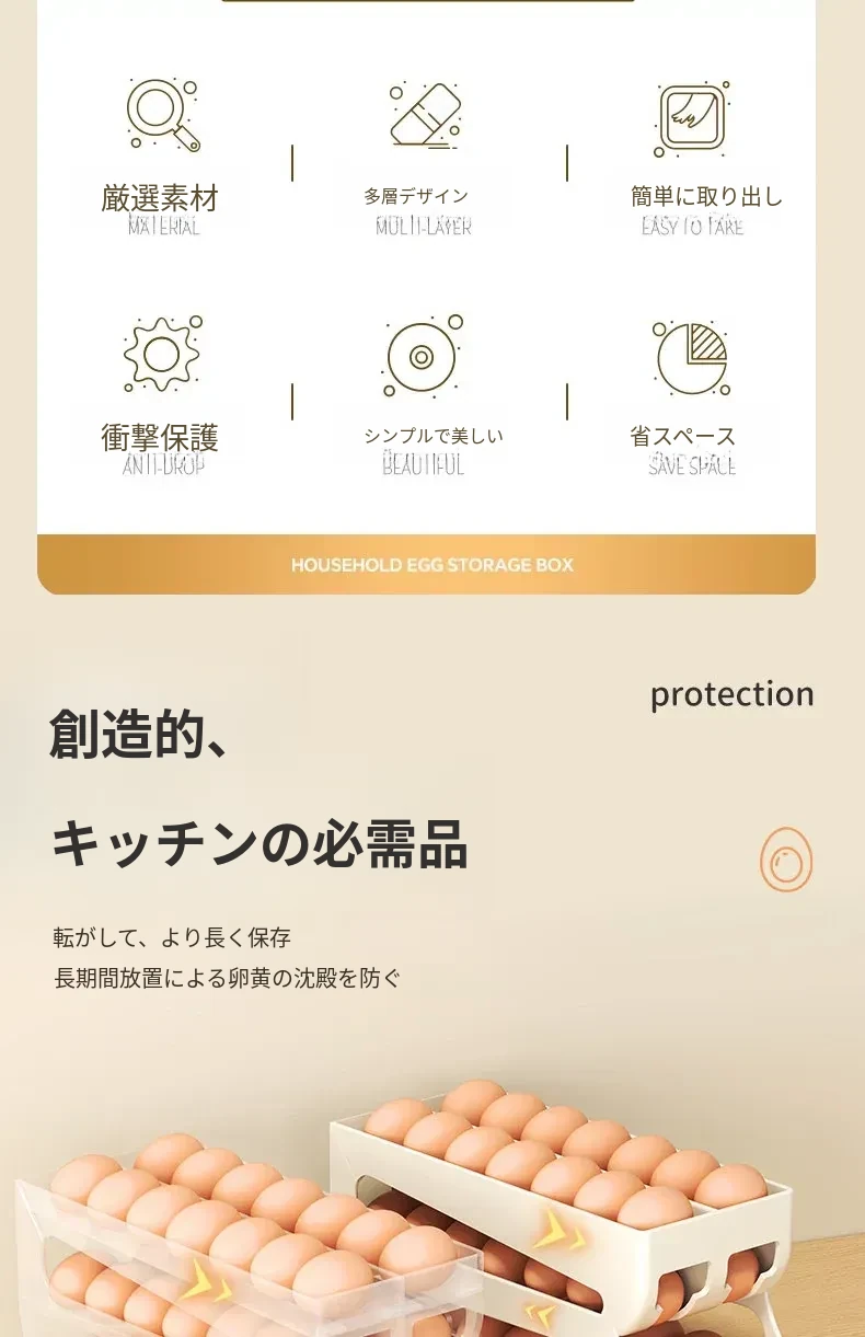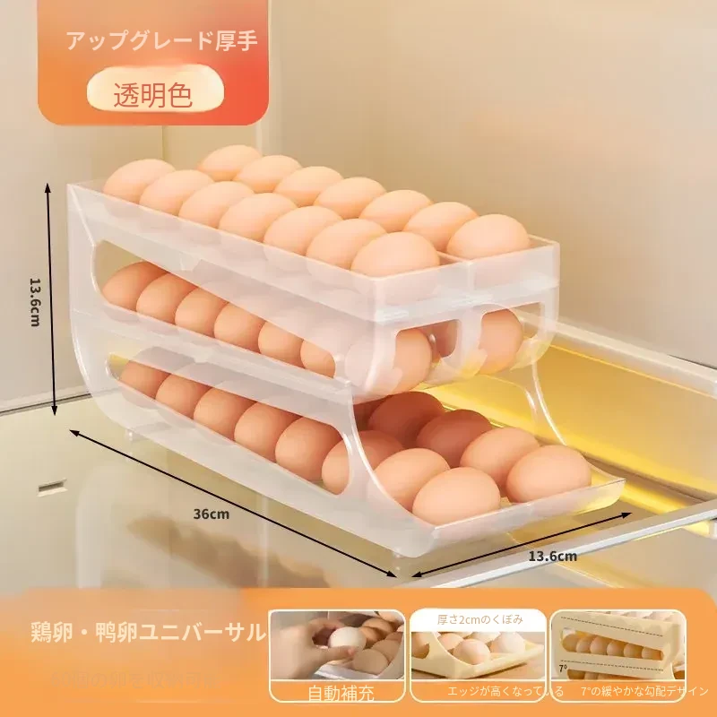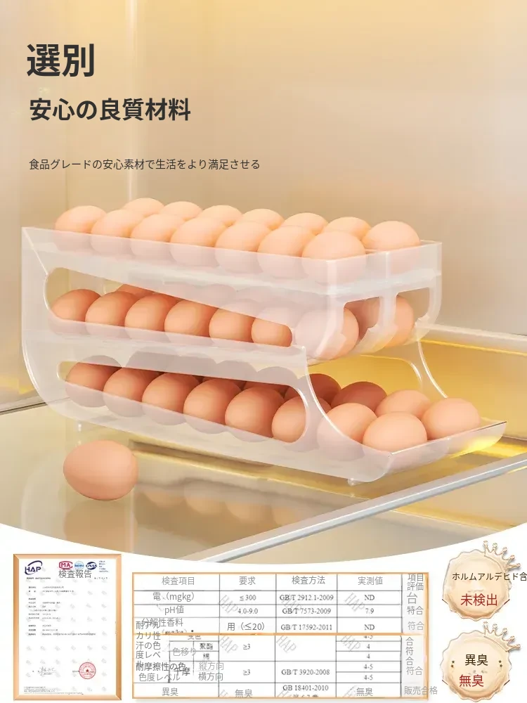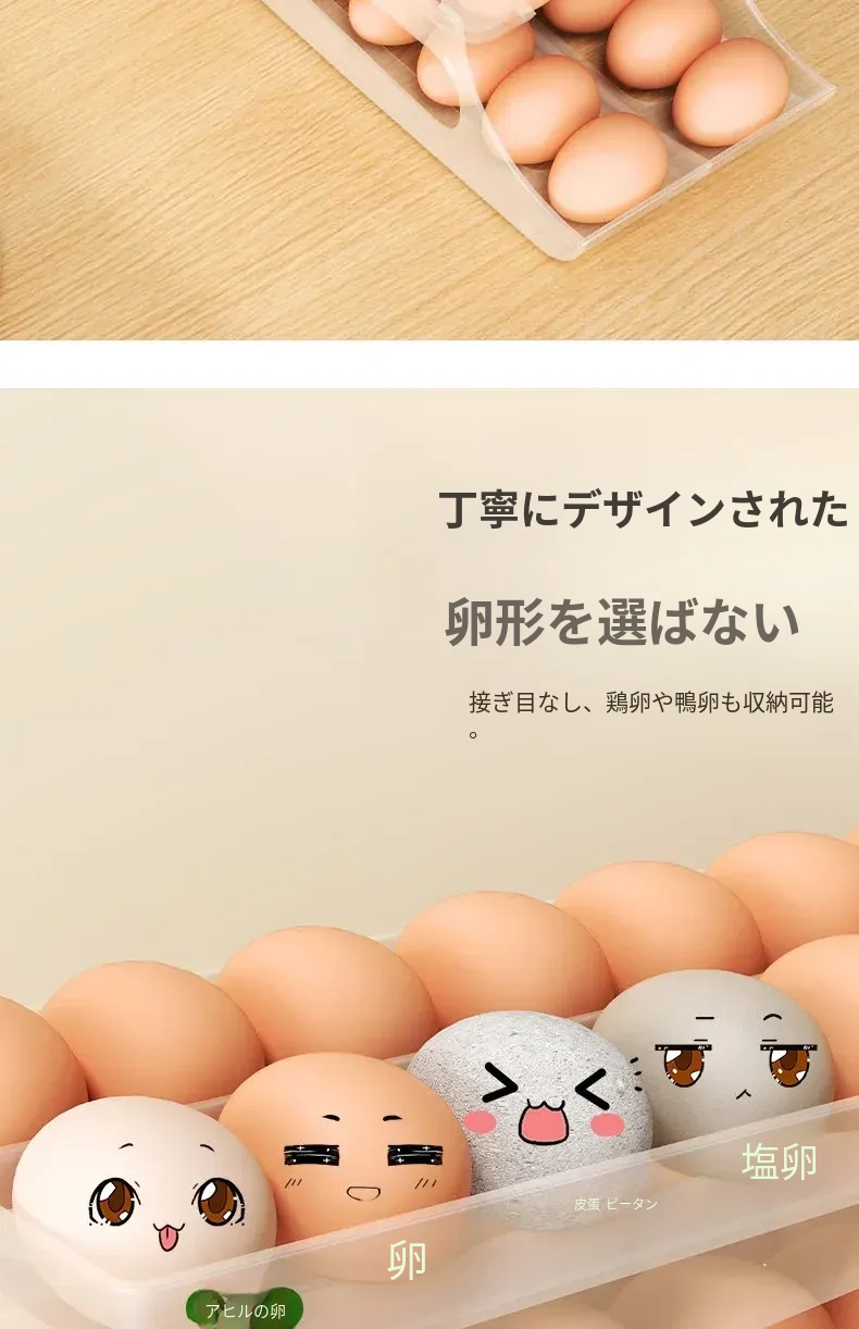 自動回転卵収納ボックス - 多層設計で便利!冷蔵庫のサイドドアにぴったりフィットする卵トレイ、鮮度を保ちながら美しいキッチンを演出します。