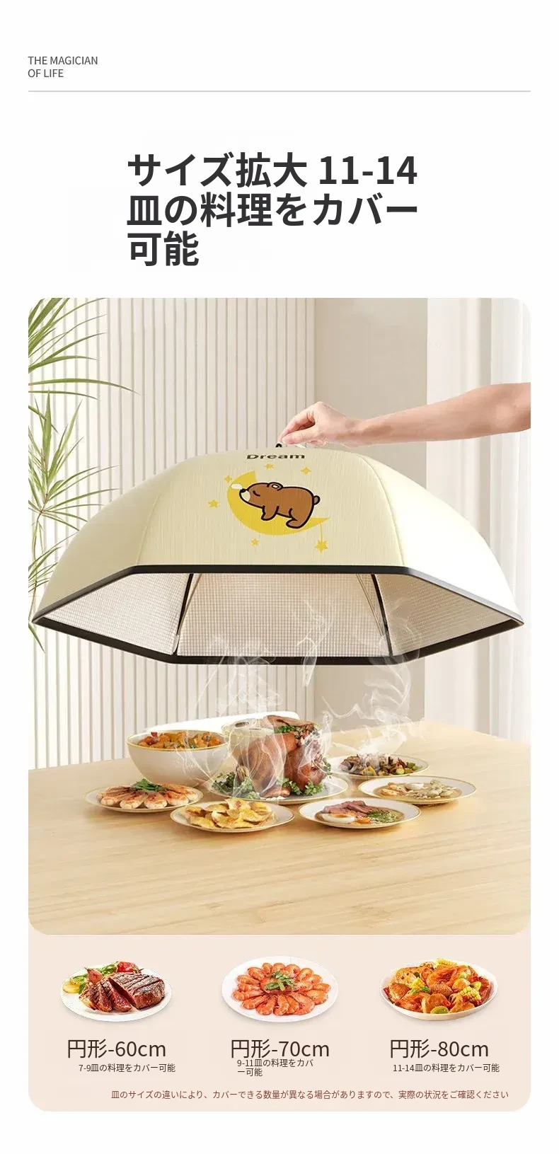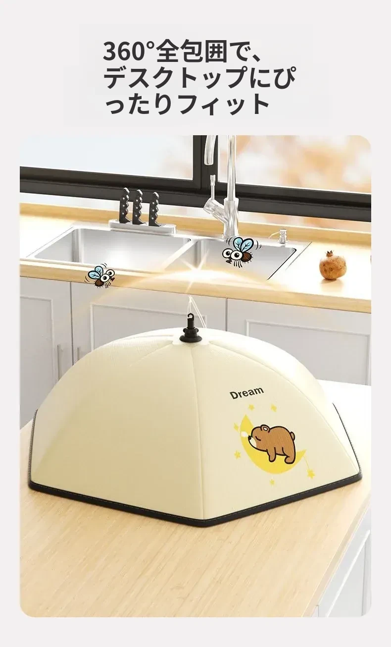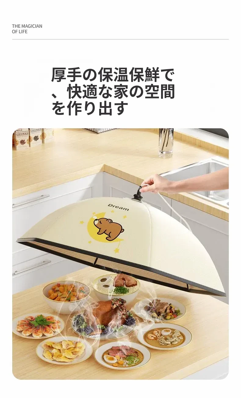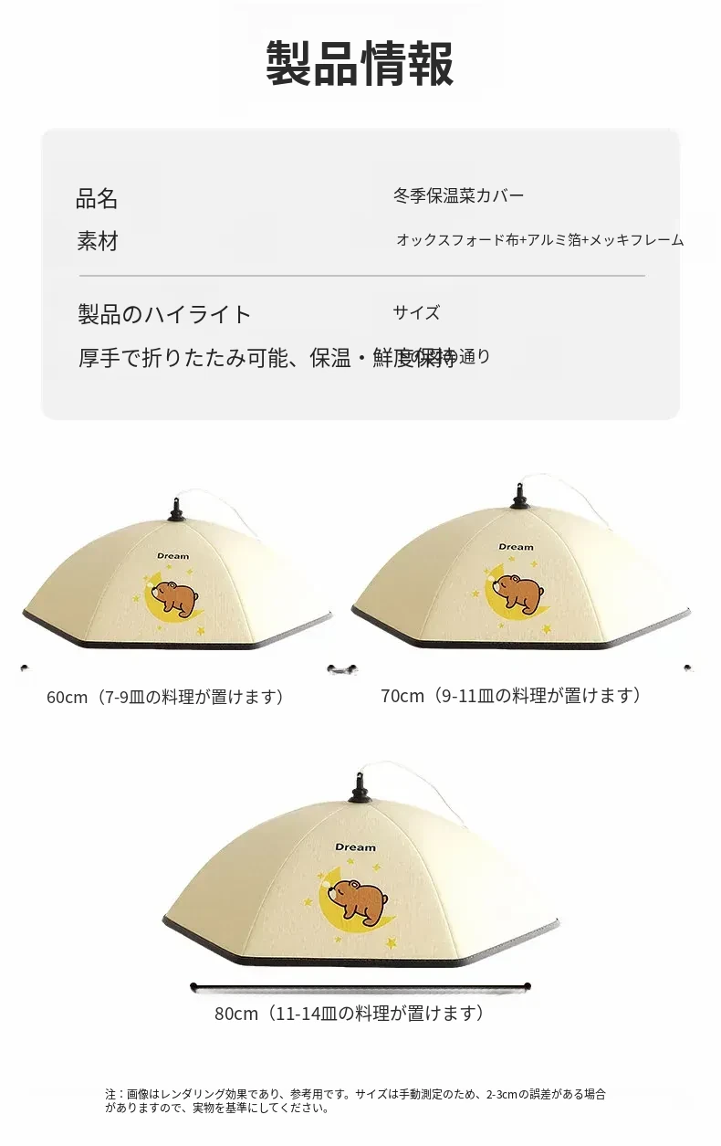 かわいいクマ✌【円形80cm】6-8皿の料理を置けます(厚手の保温/虫やハエ防止)