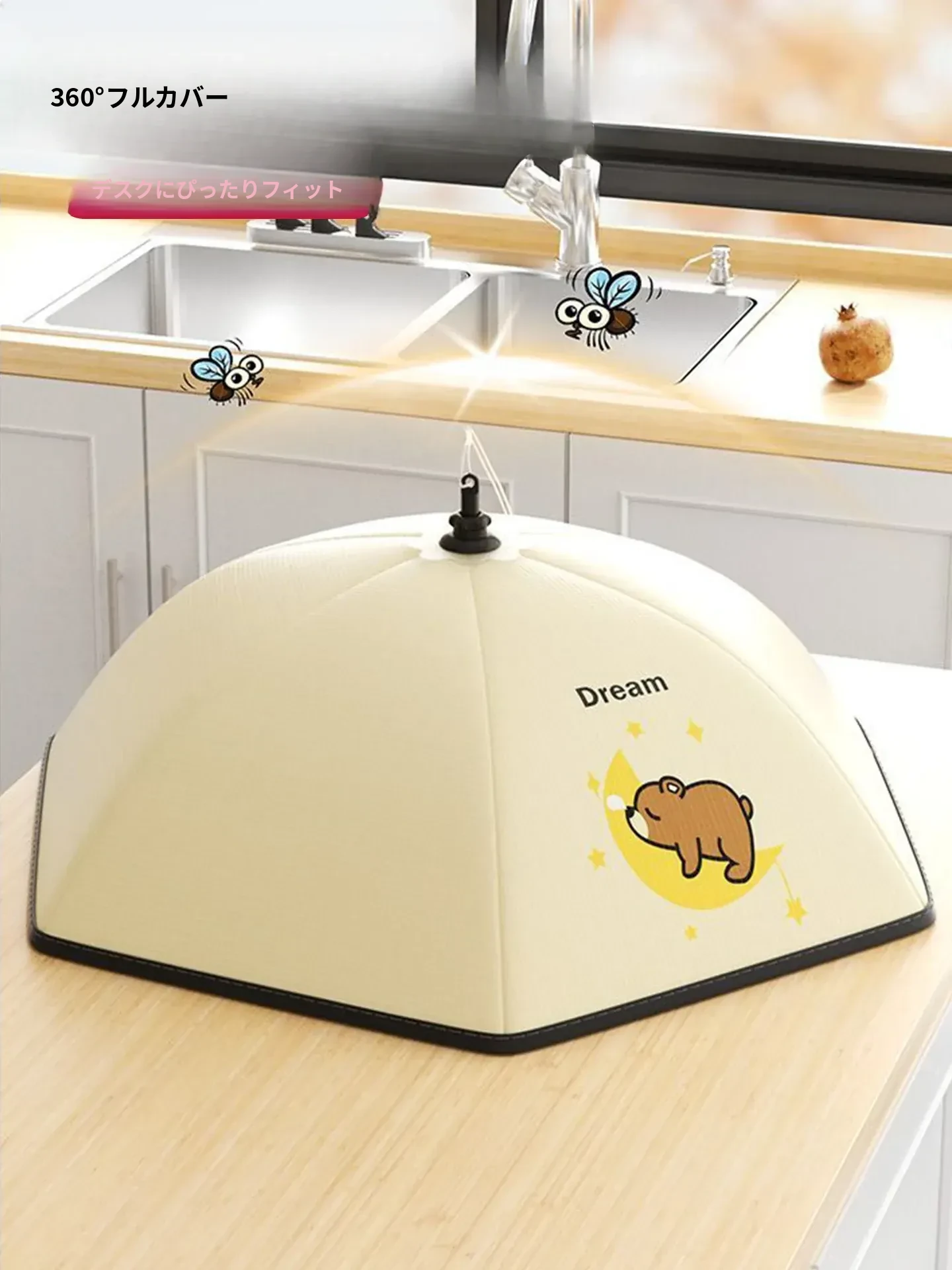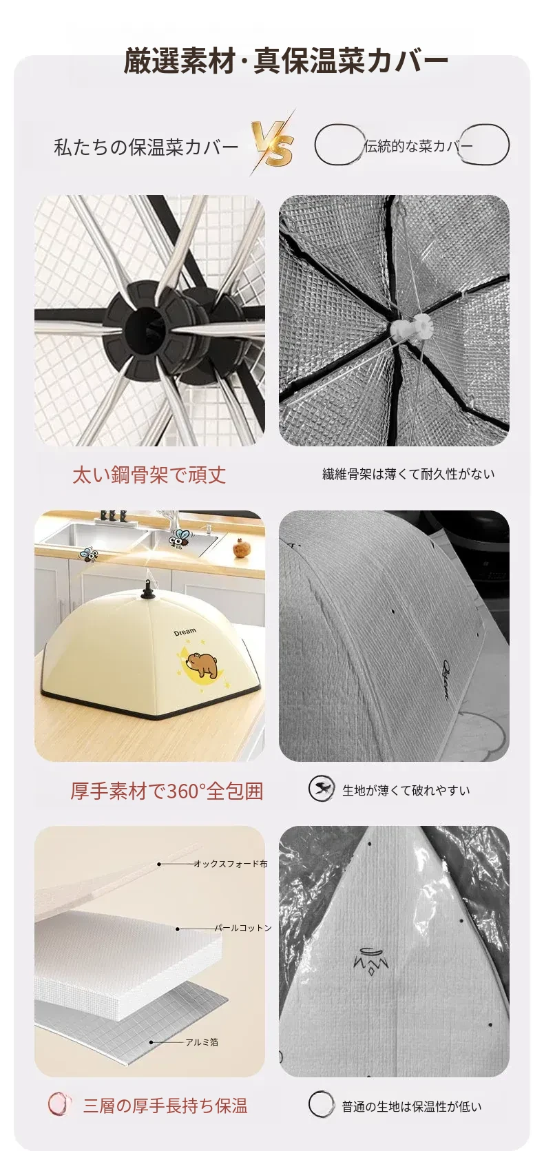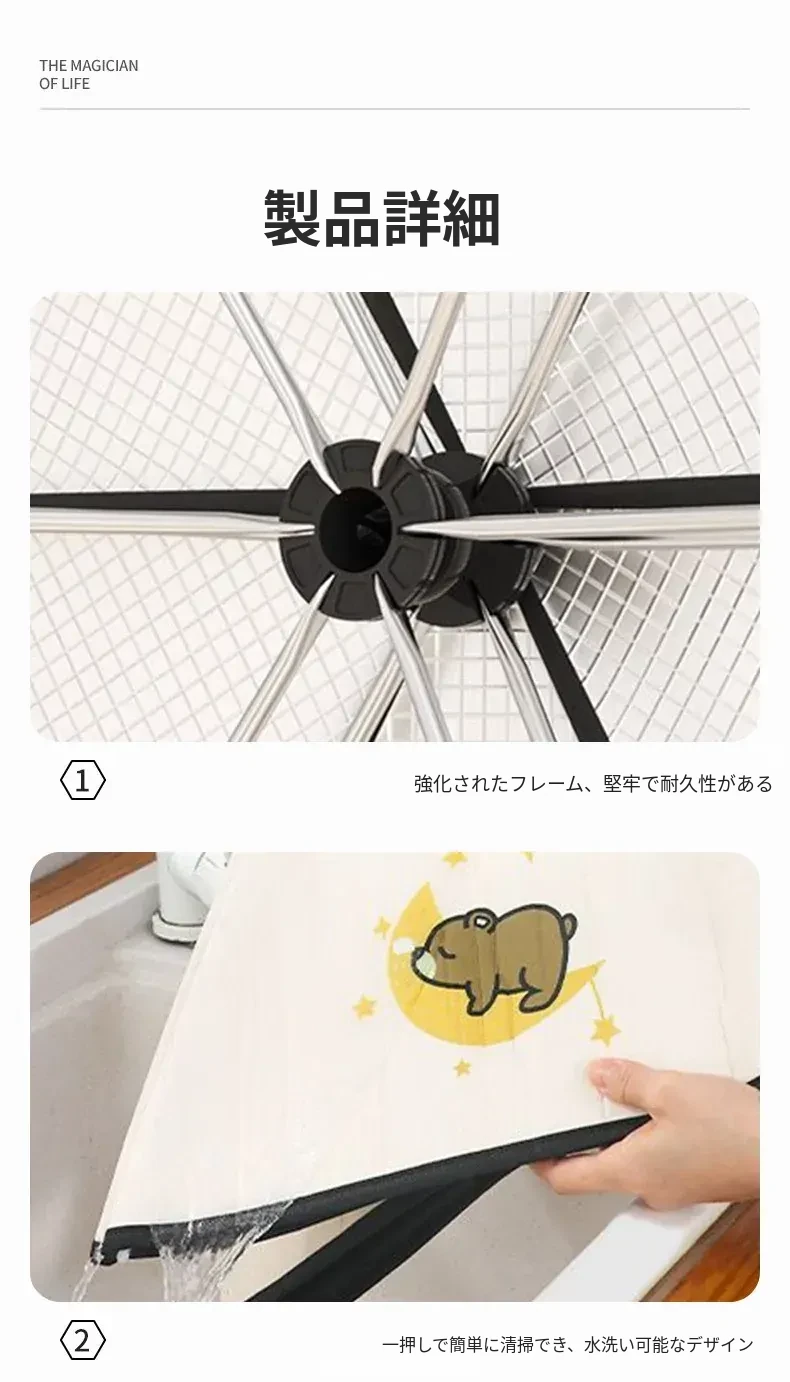 かわいいクマ✌【円形80cm】6-8皿の料理を置けます(厚手の保温/虫やハエ防止)