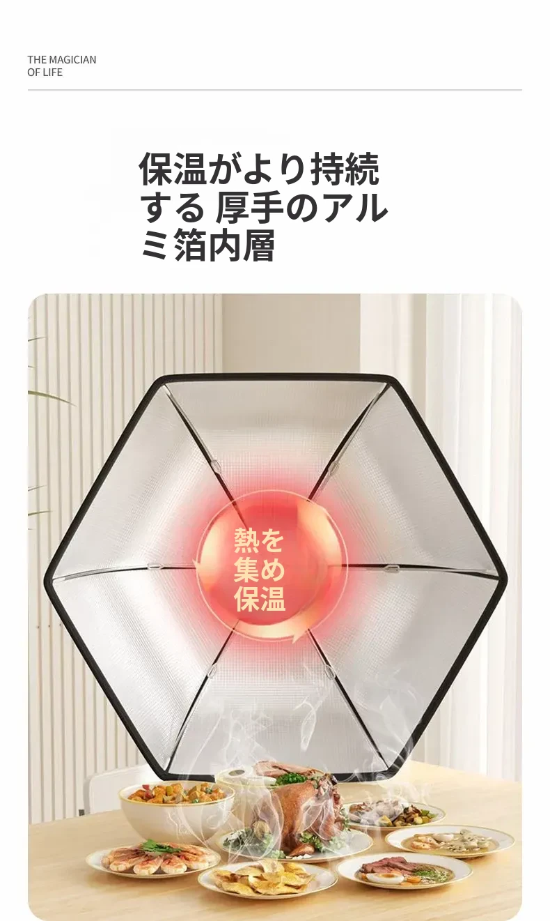 高級折りたたみ式保温食品カバー - 洗える!ほこりやハエから守る、残り物や料理をしっかり保護する家庭用カバー。おしゃれなテーブルを演出!