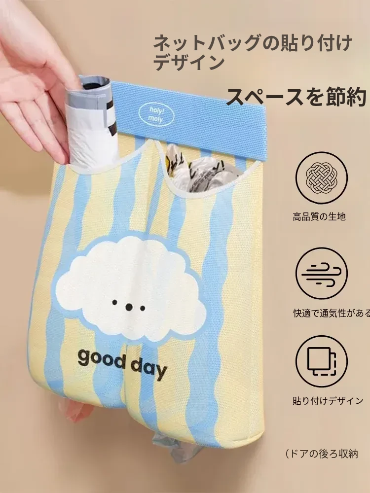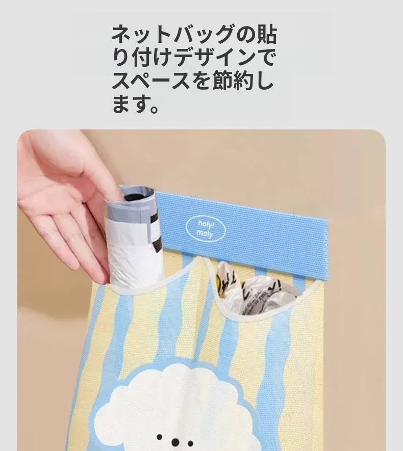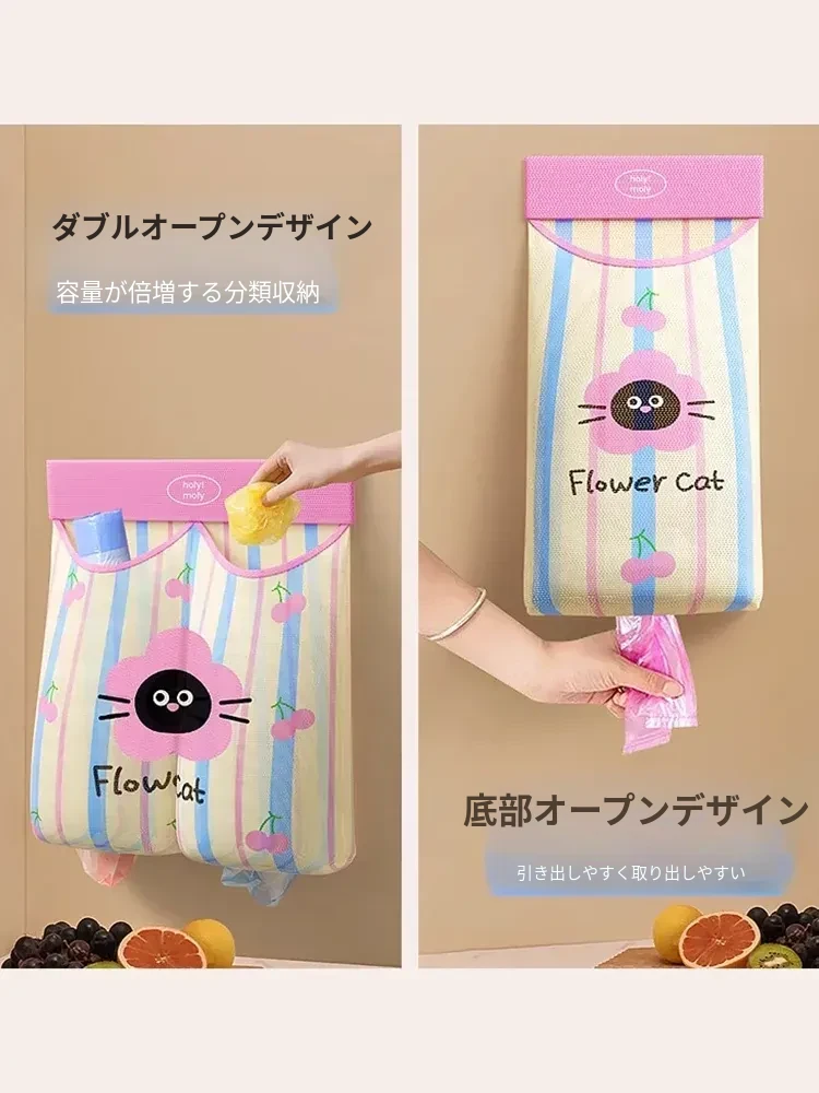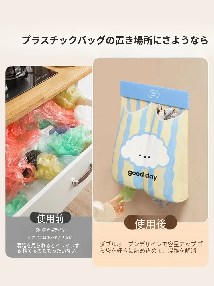 キッチンのゴミ袋収納の神アイテム!壁掛け式の大容量プラスチック袋収納ポケット、魔法のように便利なドア用ネットバッグで、スッキリ整理整頓!