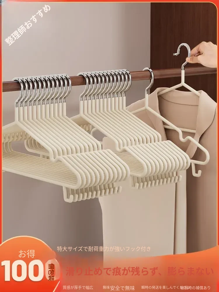 滑り止め付き!100本セットの太めハンガー - 家庭用・学生寮向け、衣類をしっかり支える無痕ハンガーで、衣服を美しく保つ!