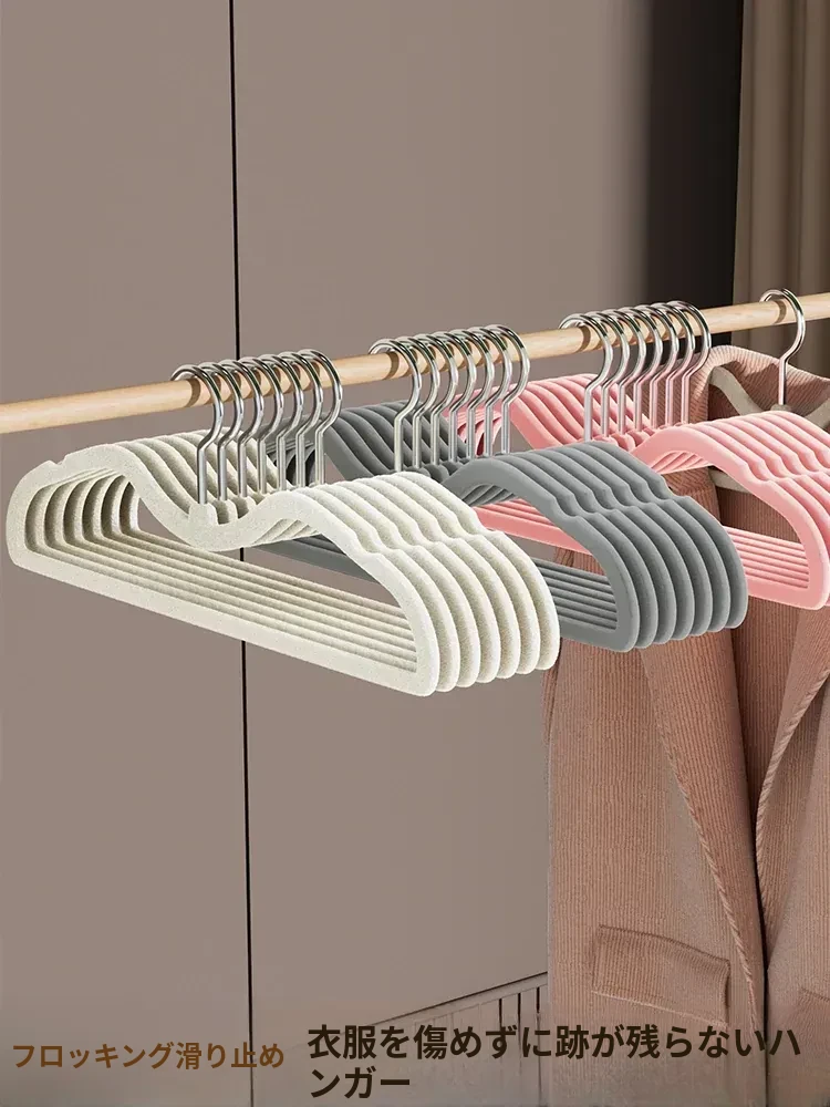 滑り止め付き!家庭用フロッキングハンガー 無痕で衣類を美しく整理するプロ仕様の収納ラック クローゼットや干す時に最適!