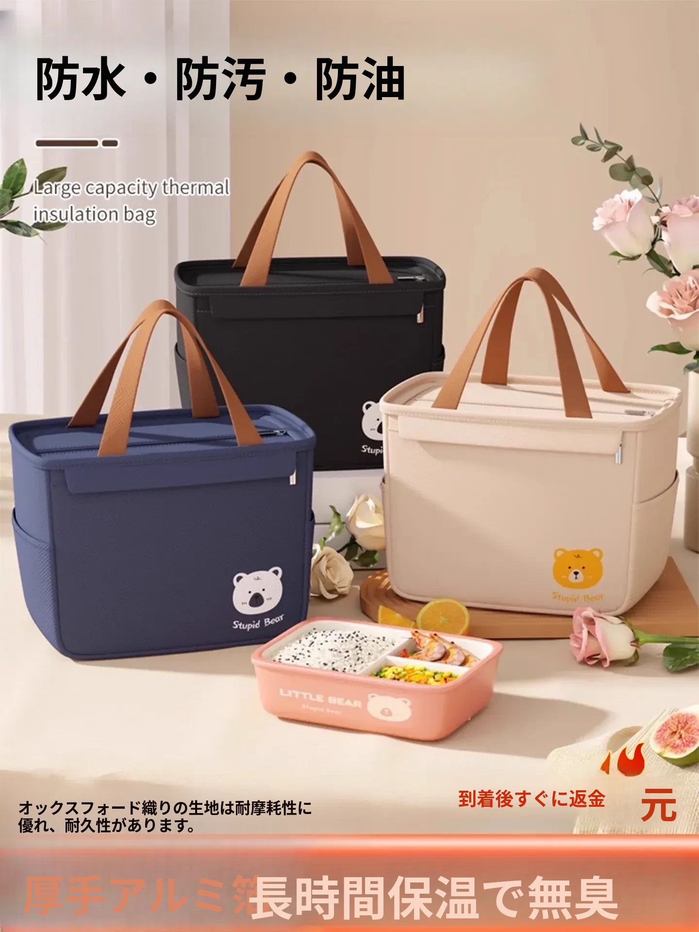 保温弁当バッグ - おしゃれなデザインで、通勤や学校に最適!厚手アルミフォイル素材で食べ物をしっかり保温。持ち運び便利な手提げ付き。あなたのランチタイムをもっと特別に!
