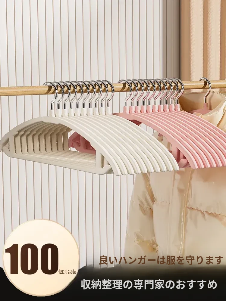 家用衣架|太さと幅を増した頑丈設計!衣類をしっかり支える無痕タイプのハンガー。収納力抜群で、洋服が滑り落ちず、すっきりとしたクローゼットを実現します!