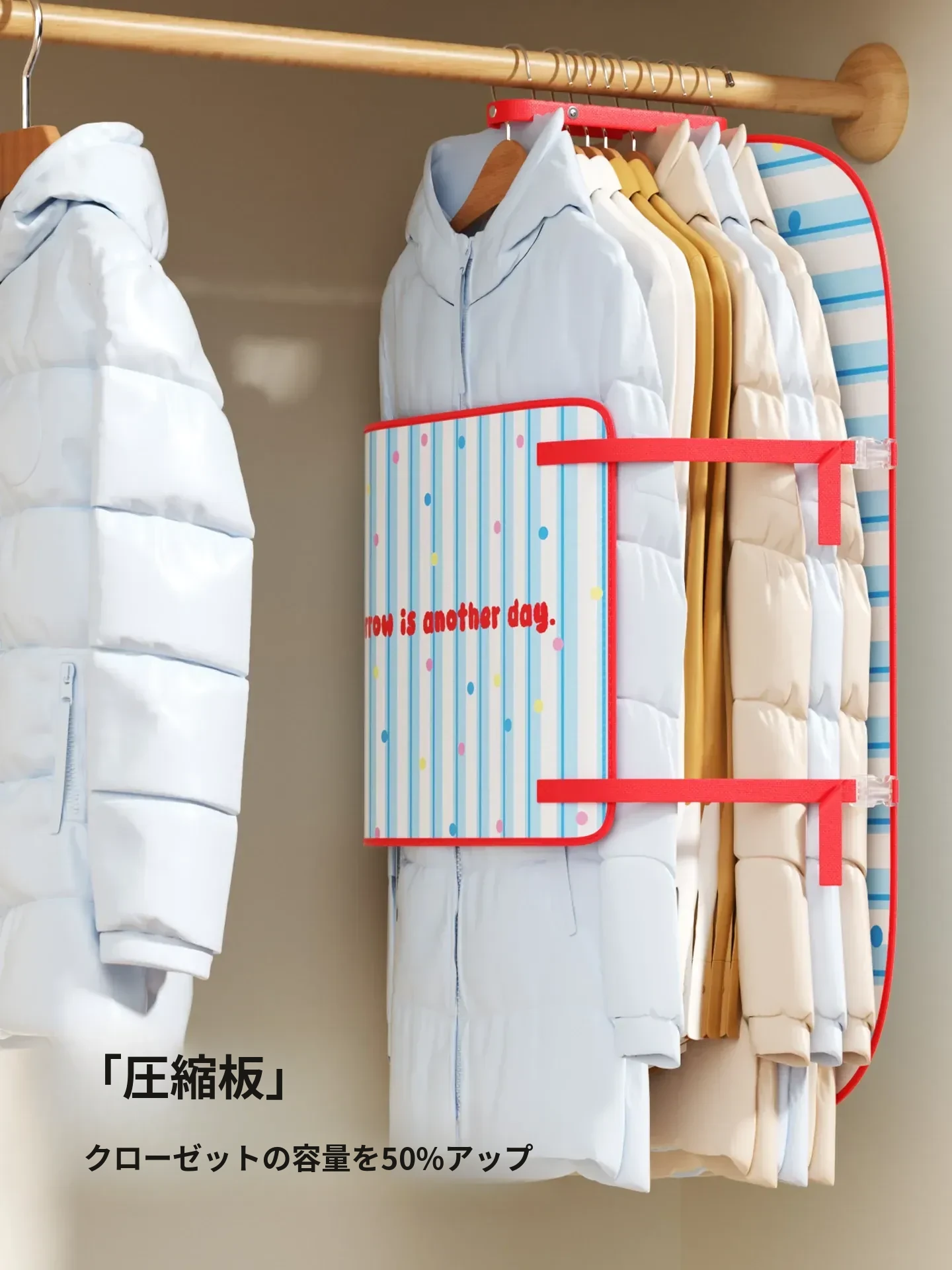 衣類圧縮収納ボード - 衣服をしっかり圧縮!防塵カバー付きでクローゼットがスッキリ!コートやダウンジャケットもスムーズに収納できる便利アイテム!