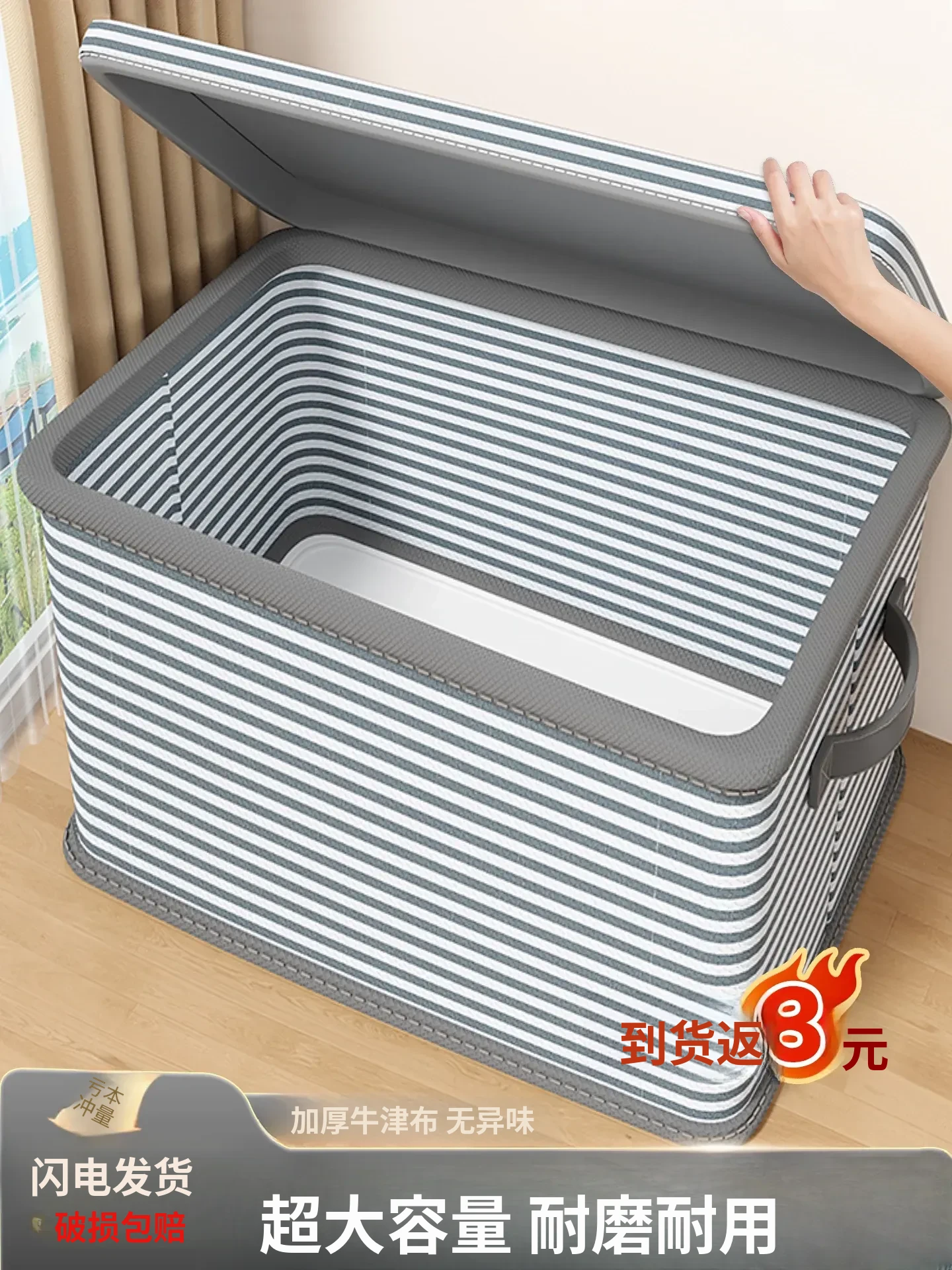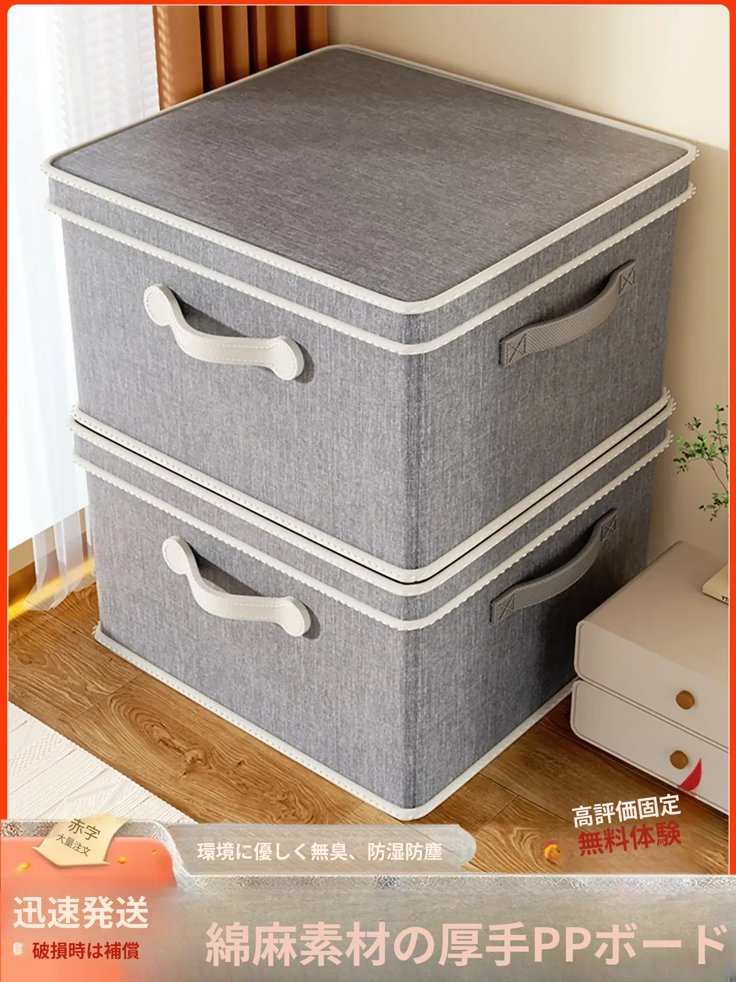 厚手のコットンリネン収納ボックス - 衣類整理に最適!折りたたみ式大容量クローゼットバッグ、家庭用の便利アイテムで、布団や衣類をスッキリ整理!