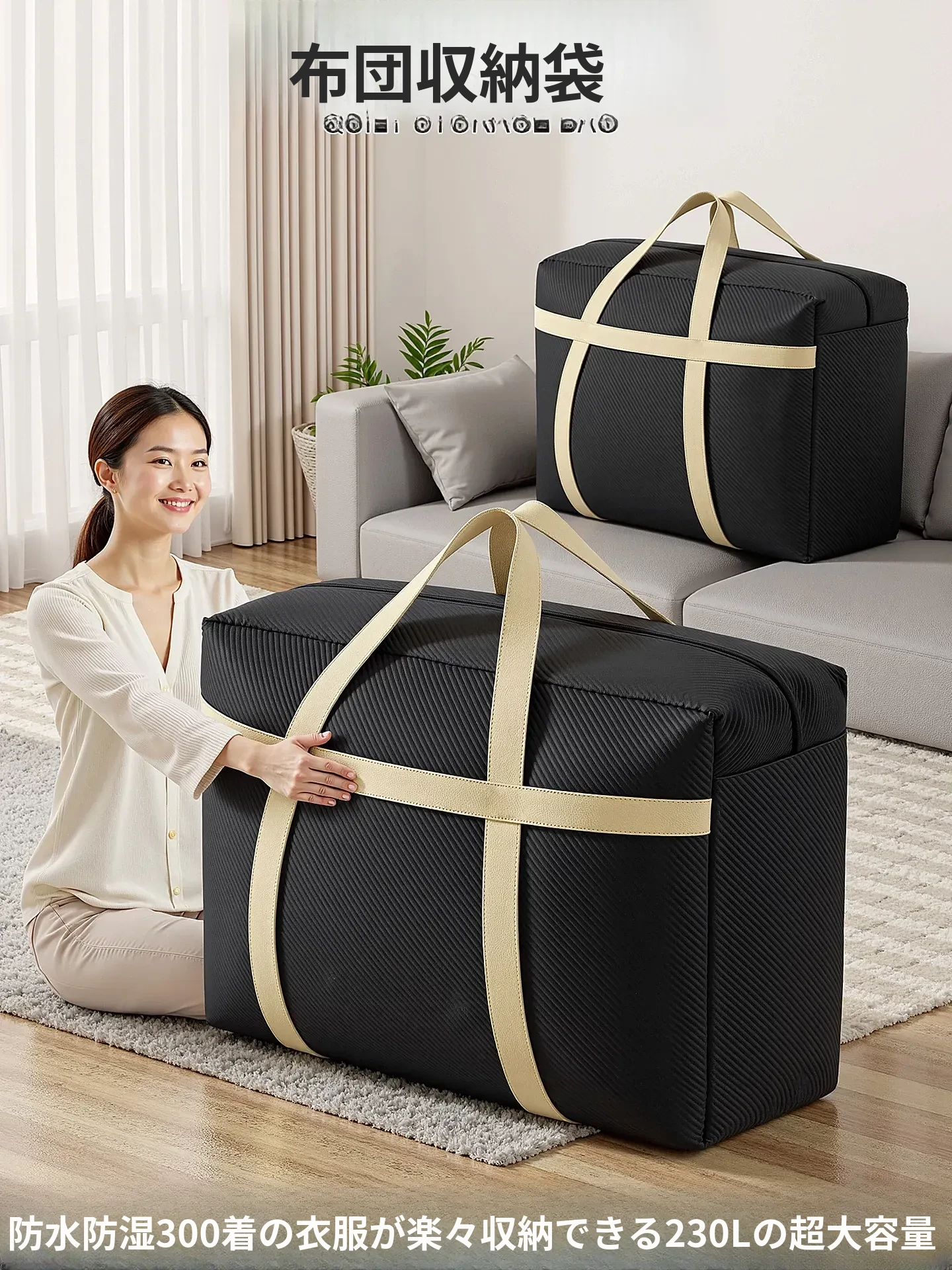 大容量収納袋 – 引っ越しや整理に最適!衣類や布団をしっかり収納できる防湿旅行バッグ。快適な移動をサポートし、整理整頓も簡単!