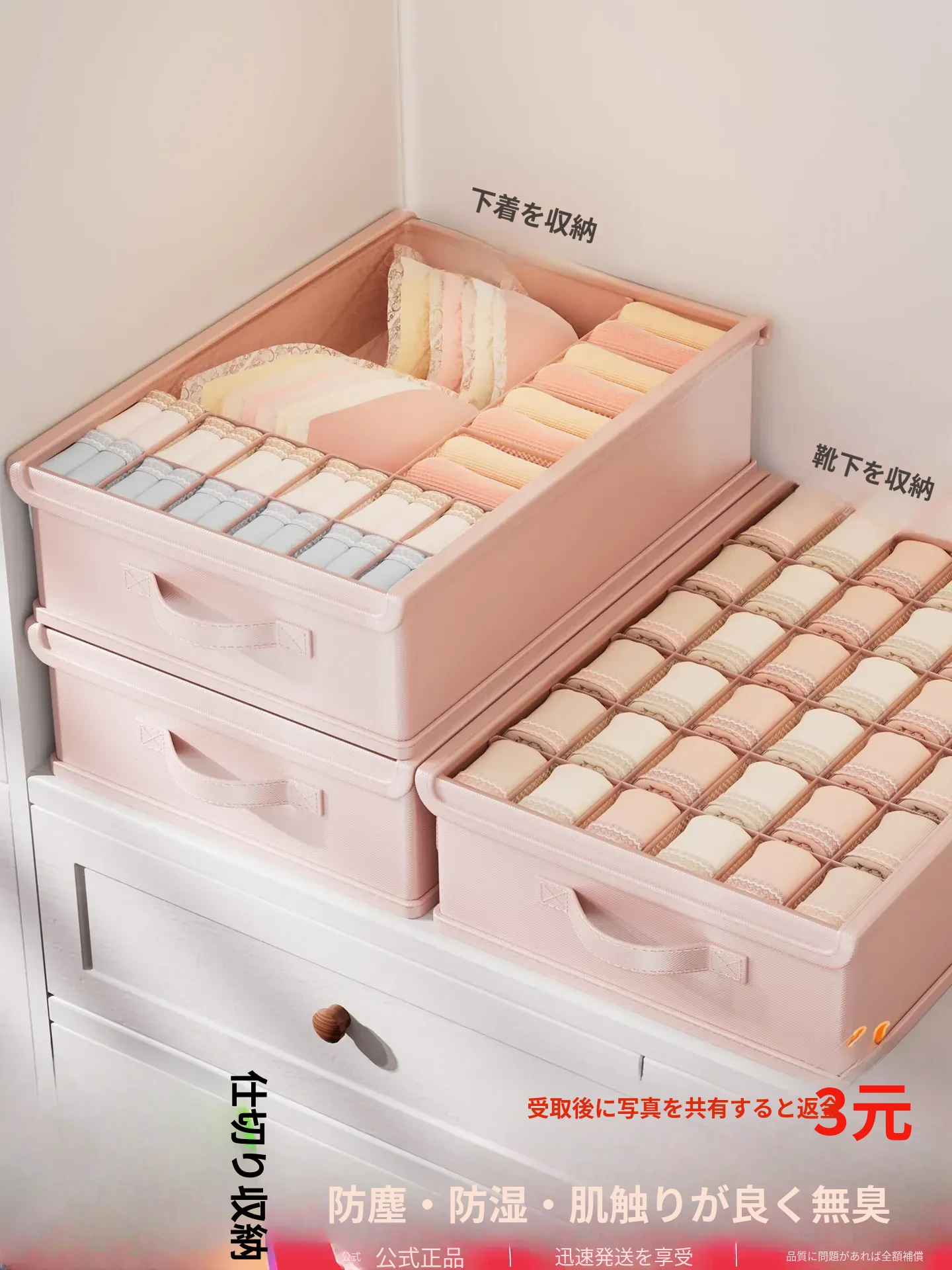家用三合一内衣内裤収納ボックス|衣類整理に最適!仕切り付きで靴下もスッキリ収納!おしゃれで機能的なデザイン、あなたのクローゼットをもっと便利に!