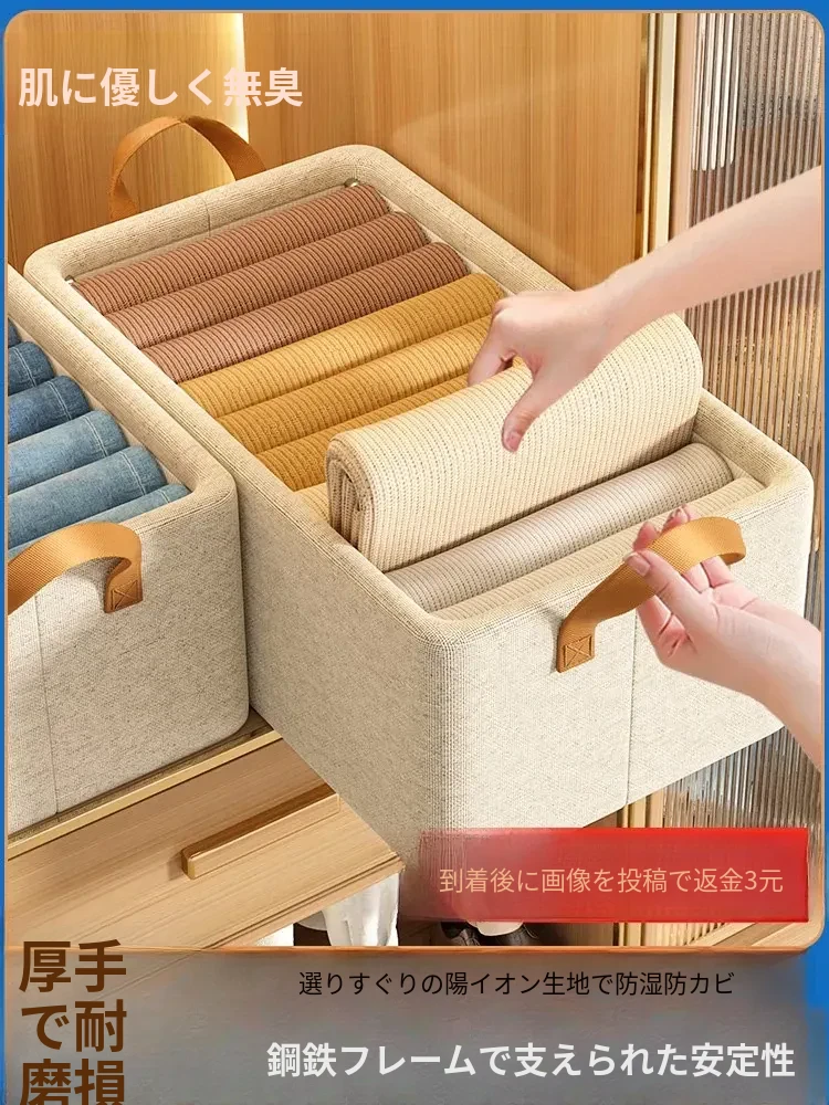 大容量布製折りたたみ収納ボックス|衣類整理に最適!クローゼットのスペースを有効活用!パンツや服をスッキリ収納する便利なアイテム!