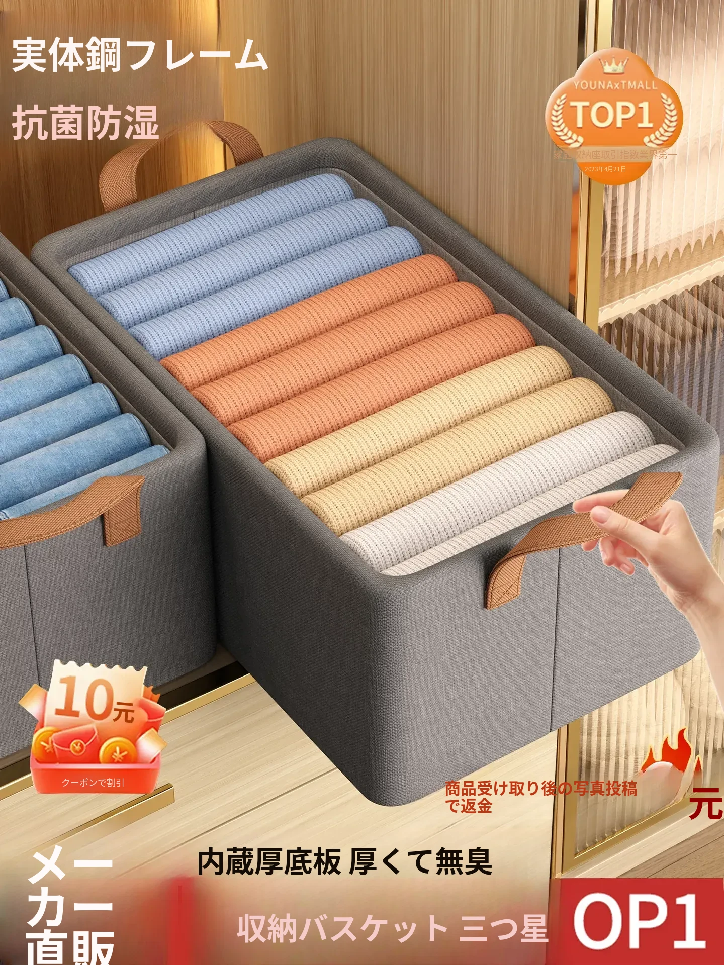 衣類収納ボックス|家庭用大容量収納箱|クローゼット・衣類・おもちゃに最適|厚手・折りたたみ式でスペースを有効活用!