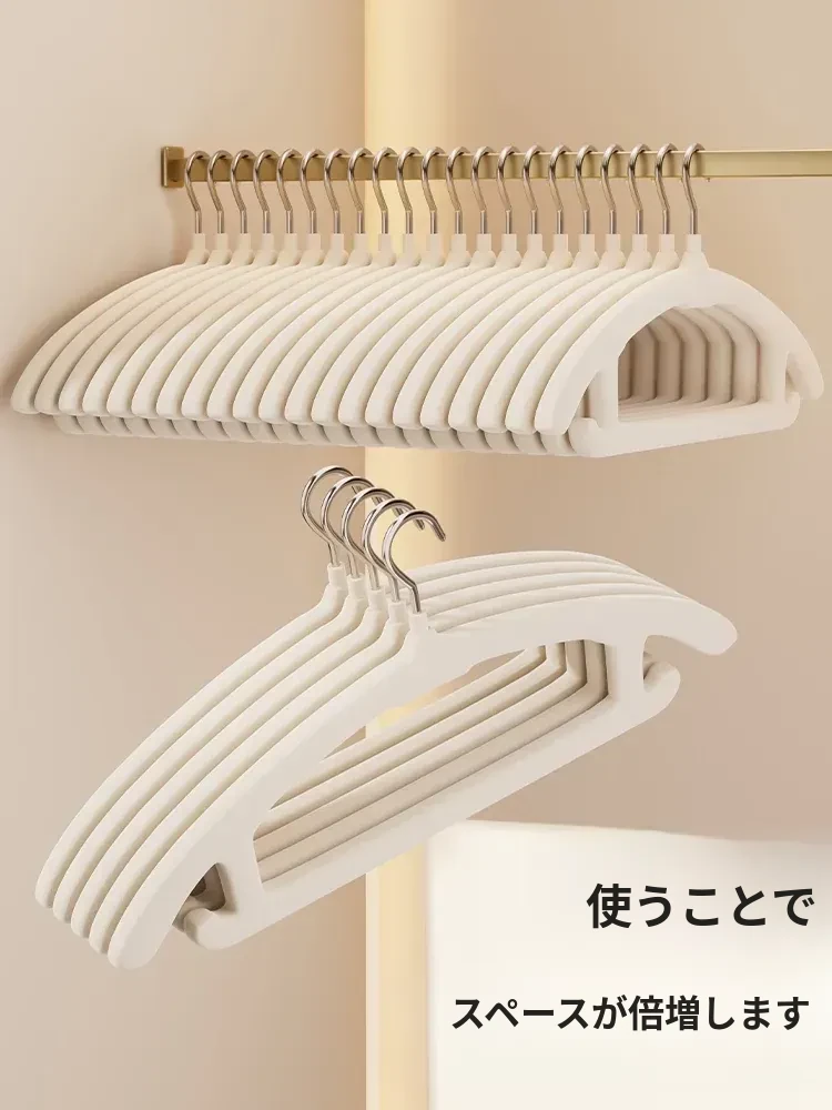 家用衣架|太さと幅を増した頑丈設計!衣類をしっかり支える無痕タイプのハンガー。収納力抜群で、洋服が滑り落ちず、すっきりとしたクローゼットを実現します!