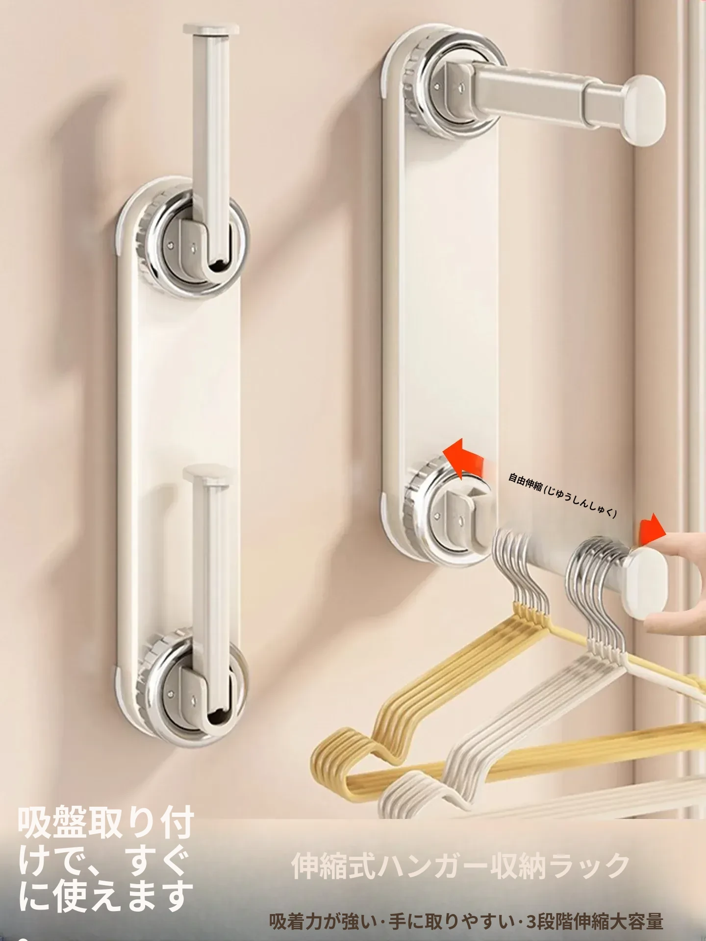 バルコニー用衣類収納ハンガー - 吸盤式で簡単取り付け!穴あけ不要の壁掛け多機能で、伸縮可能な干し台。省スペースでお部屋をスッキリ整理!