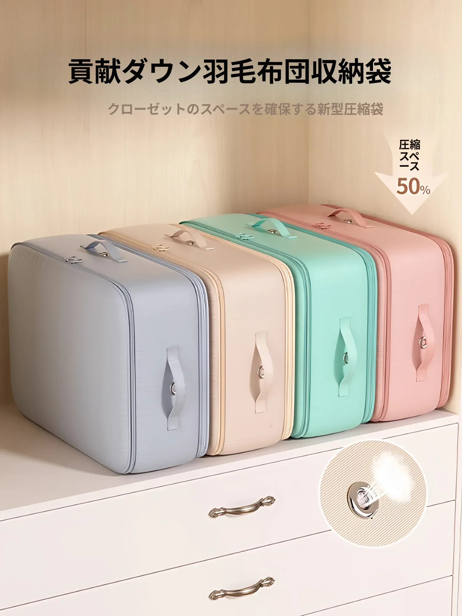ダウンジャケット収納袋|旅行・家庭用圧縮袋|クローゼット・持ち運びに便利な衣類・布団専用整理袋|スッキリ整理してスペースを有効活用!