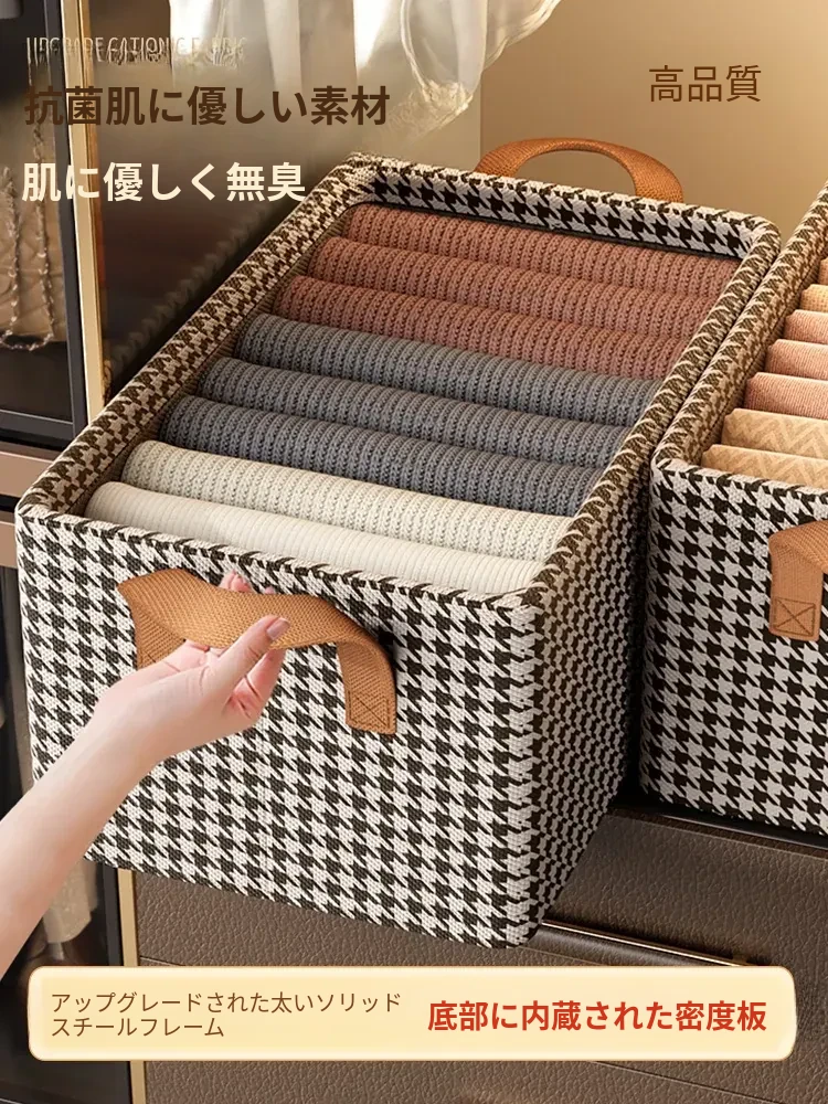 千鳥格デザインの衣類収納ボックス - 家庭用引き出し式クローゼット整理の必需品!衣類をすっきりと整理できる多層収納バスケット。お部屋を美しく保つためのアイテムです!