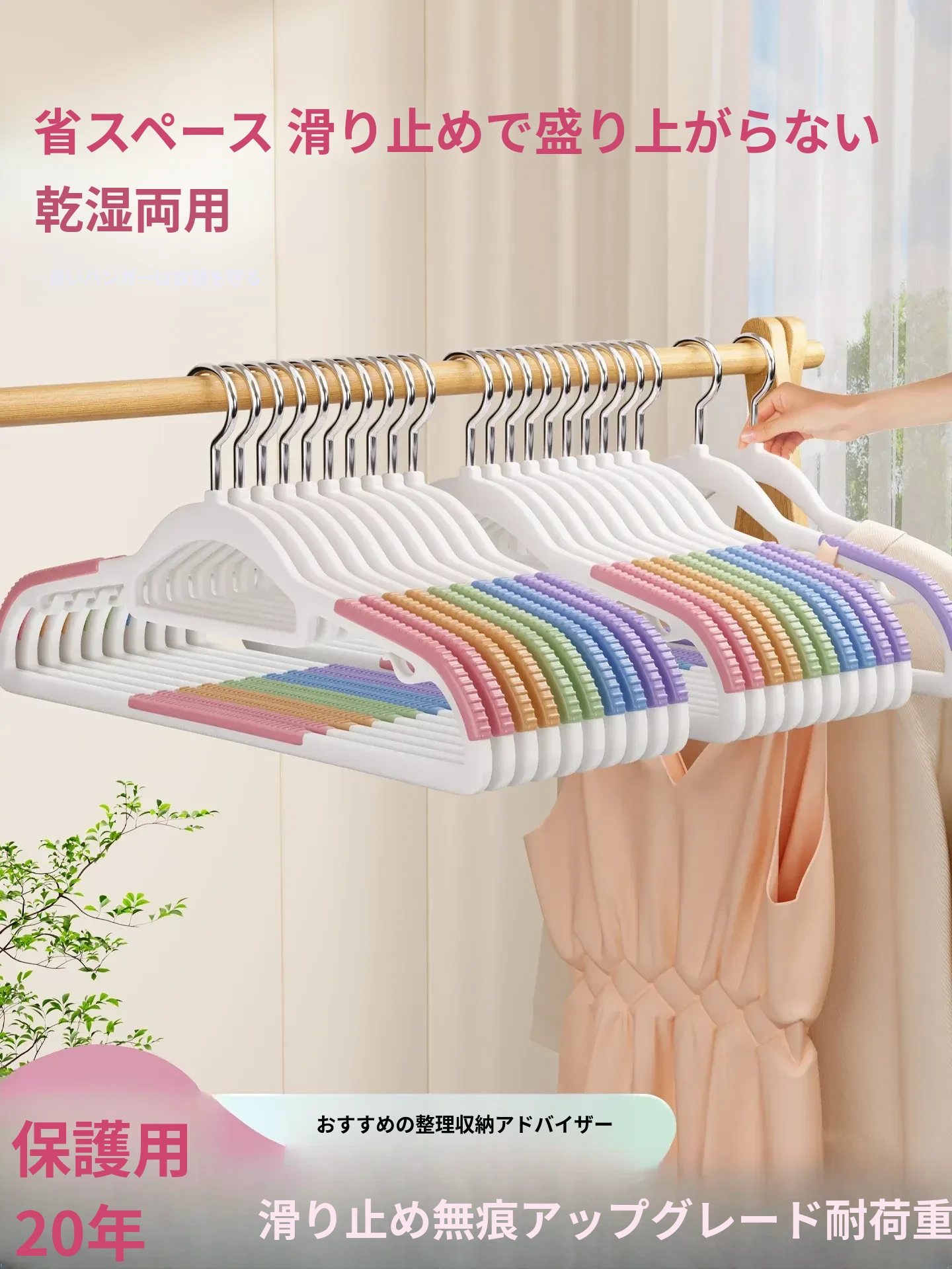 滑り止め付きの家庭用ハンガー - 衣類が滑り落ちない無痕デザイン!肩部を広げて衣服をしっかり支える、厚み増しの頑丈なハンガーで、コートやバッグも安心して干せます。